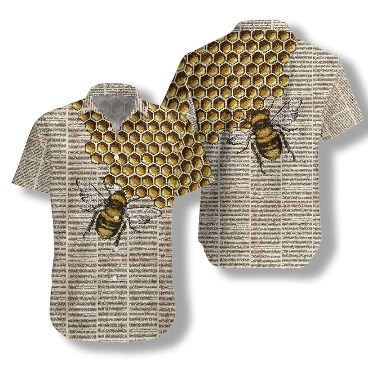 Vintage Honey Bee Design Hawaiian Shirt Magazine Background,Hawaiian Shirt Gift, Christmas Gift