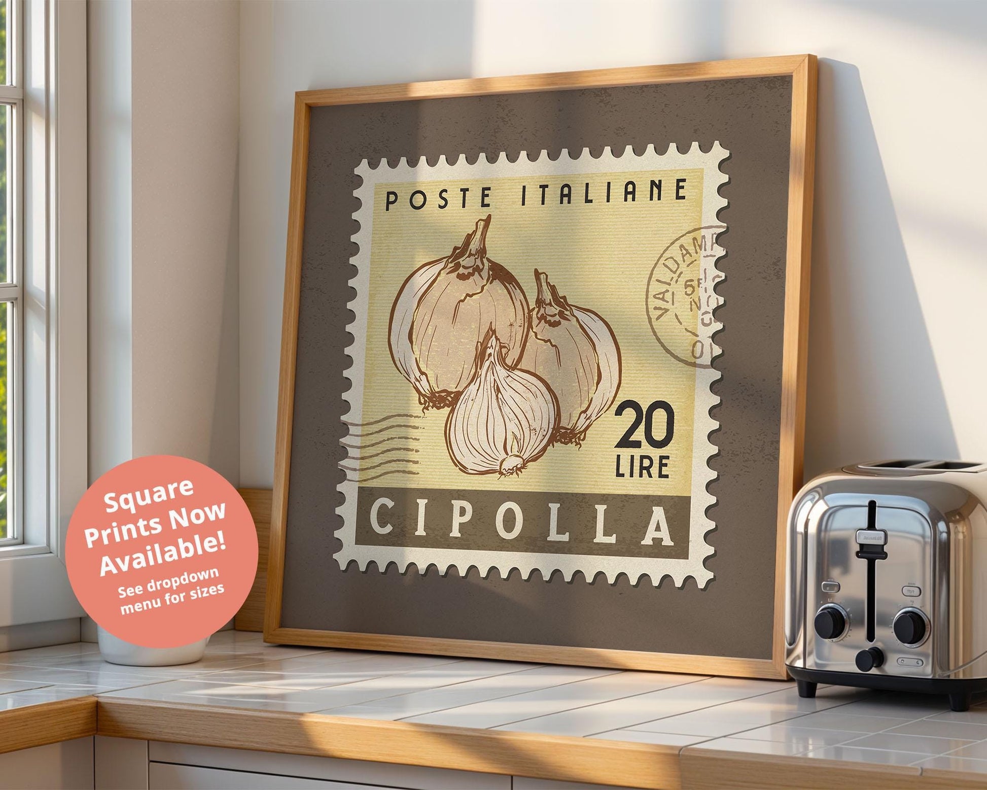 Vintage Onion Poster, Italian Food Art Print | Retro Kitchen Print | Retro Stamp Poster, Trendy Kitchen Art, Food Gift Ideas