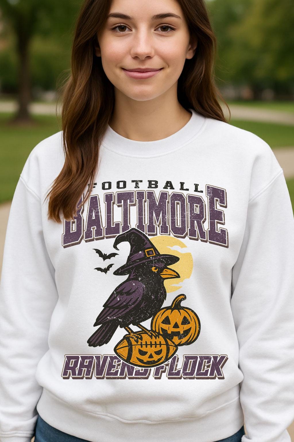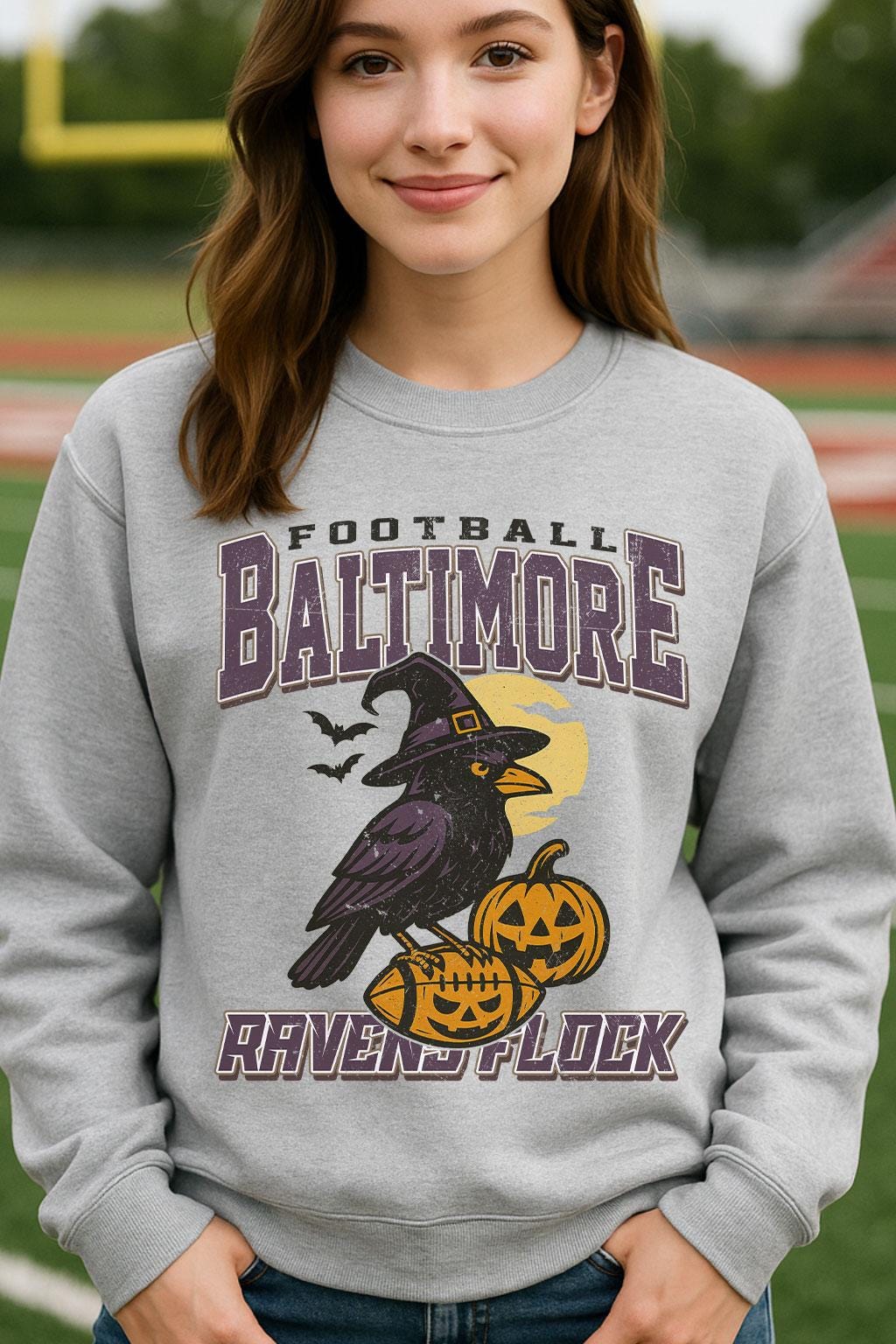 Vintage Style Baltimore Spooky Sweatshirt | Ravens Flock Halloween Football Shirt | Spooky Crow Pumpkin Shirt | Fall Sports Fan Gift