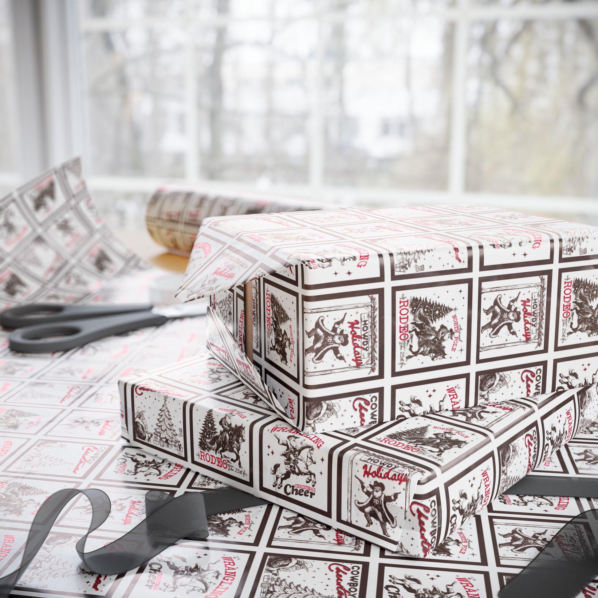Vintage Western Holiday Gift Wrapping Papers - Cowboy Christmas Gift Wrap