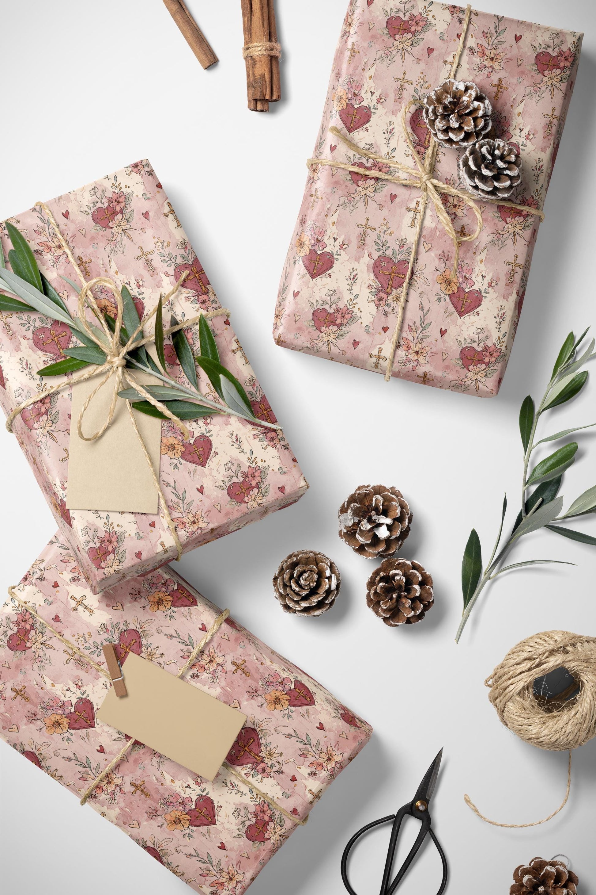 Watercolor Baptism Wrapping Paper Christian Coquette Style | Elegant Gift Wrap for Baby Girl Christening Ceremony #5