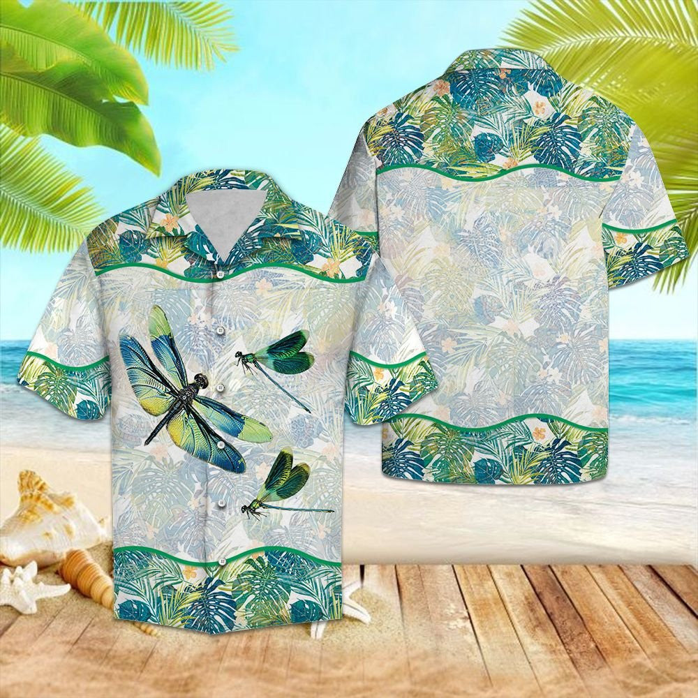 Watercolor Dragonfly With Monstera Leaves Hawaiian Shirt, Hwaiian For Gift