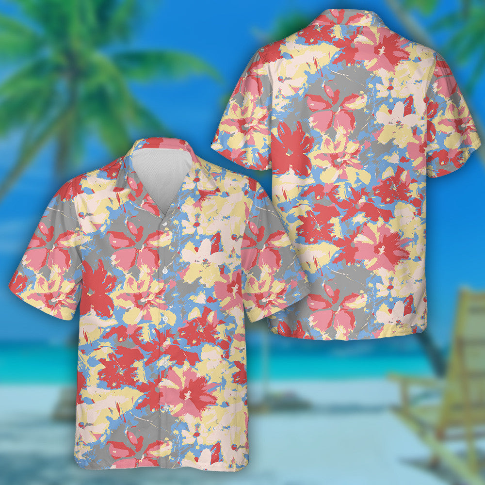Watercolor Painting Multicolored Floral Camo Military Background Hawaiian Shirt, Hawaiian Shirt Gift, Christmas Gift