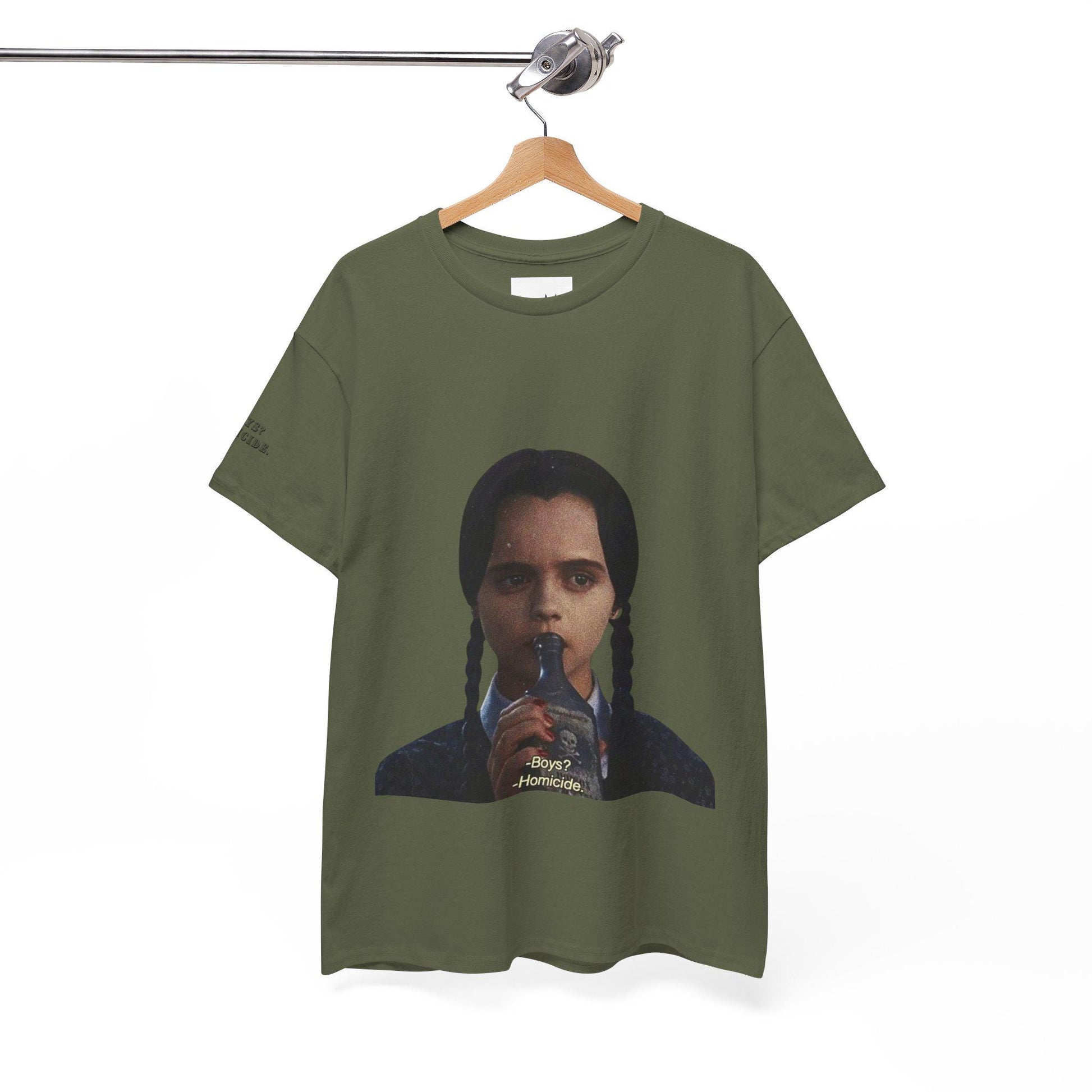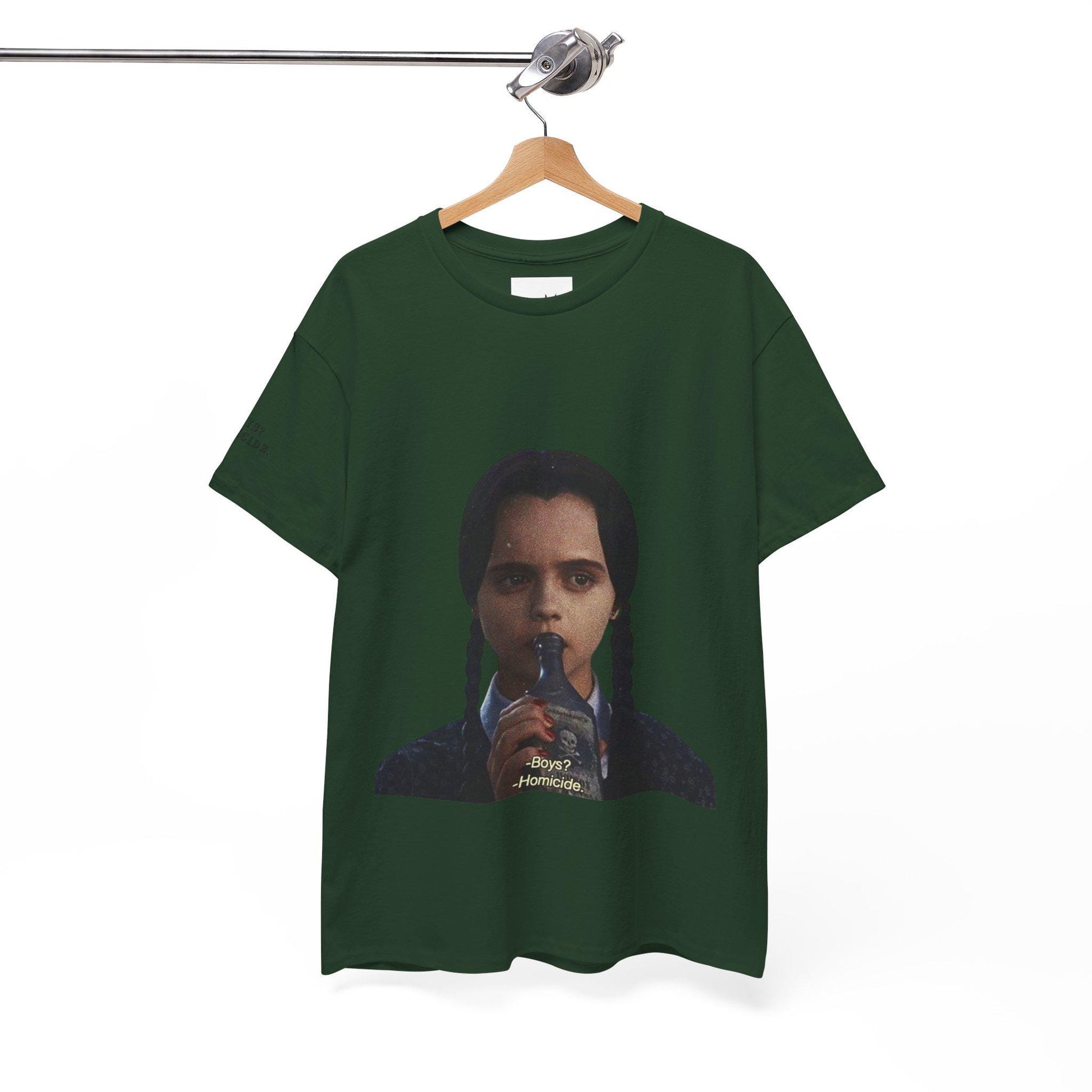 Wednesday Addams Graphic Print T-Shirt - Addams Family Halloween Shirt - Boys? Homicide Shoulder Print - Kids & Adults Unisex Tee