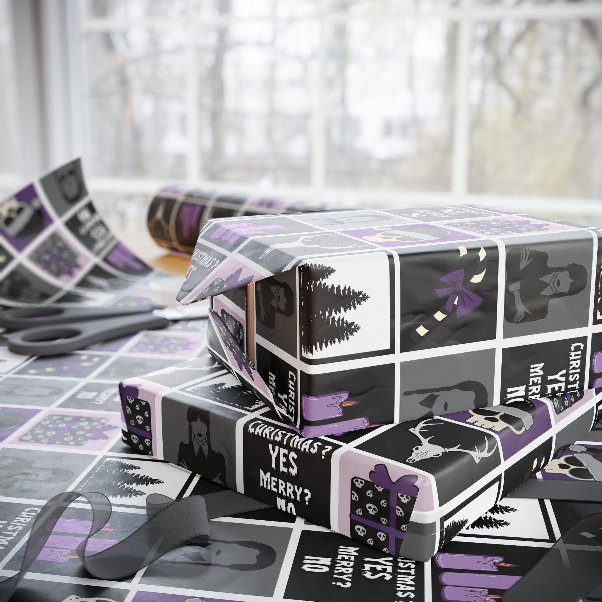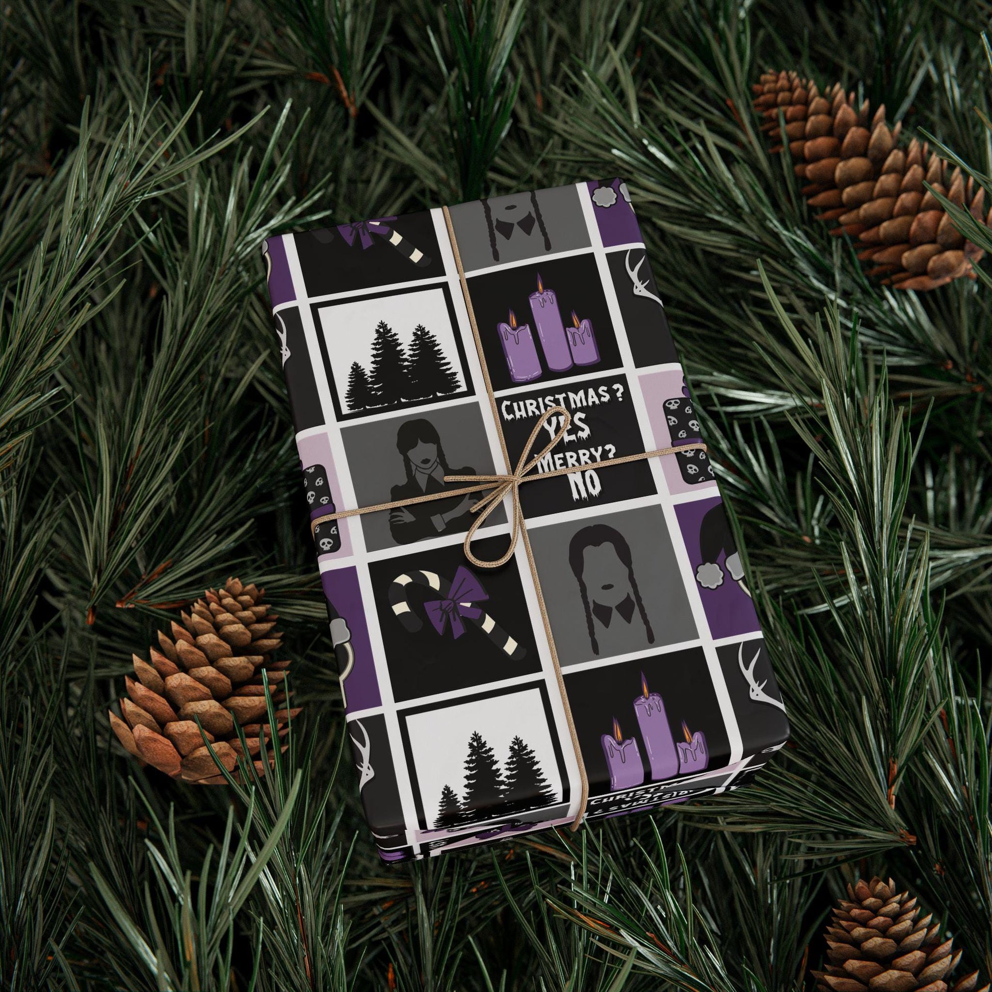 Wednesday Christmas Wrapping Paper: Xmas Goth Black Purple Gift Wrap
