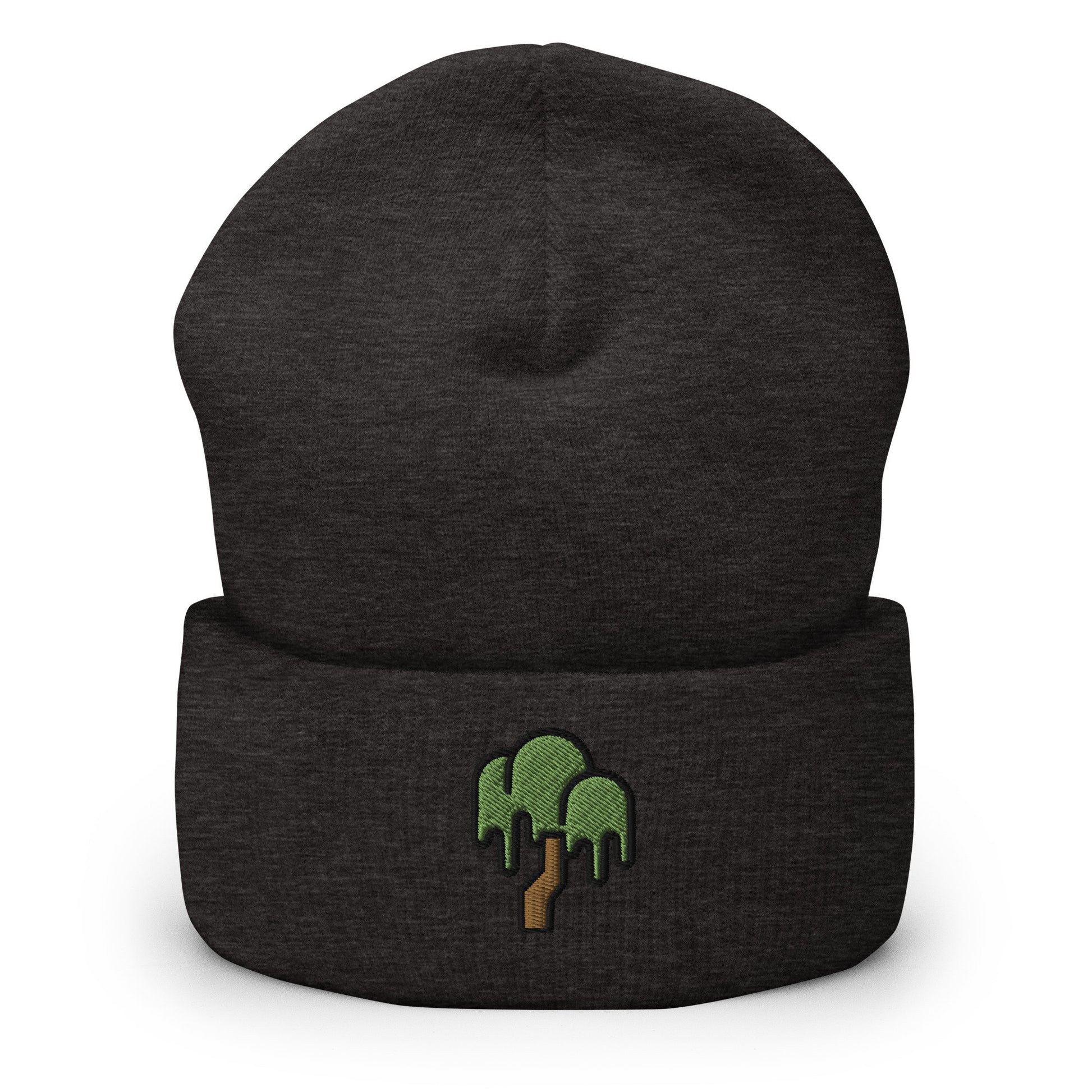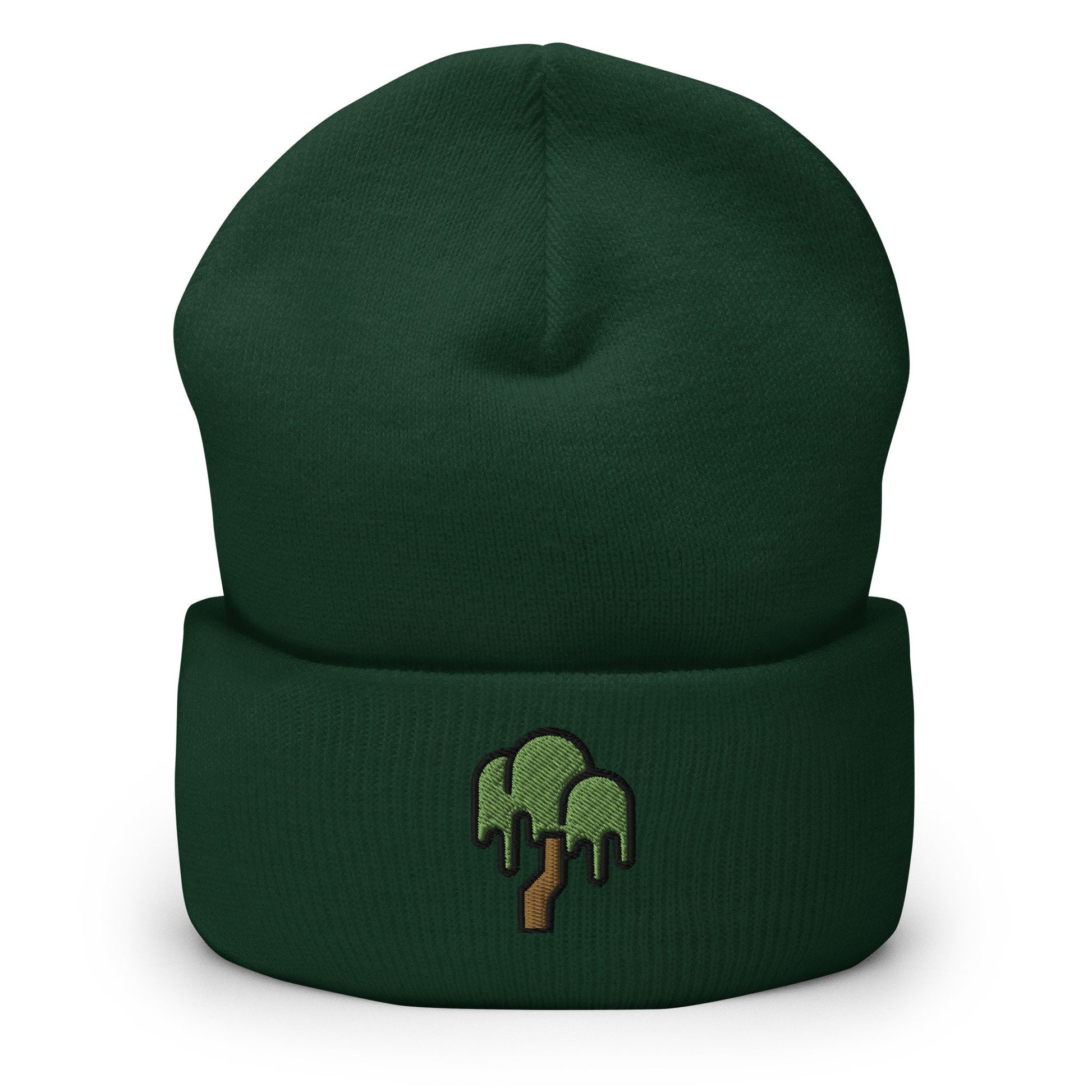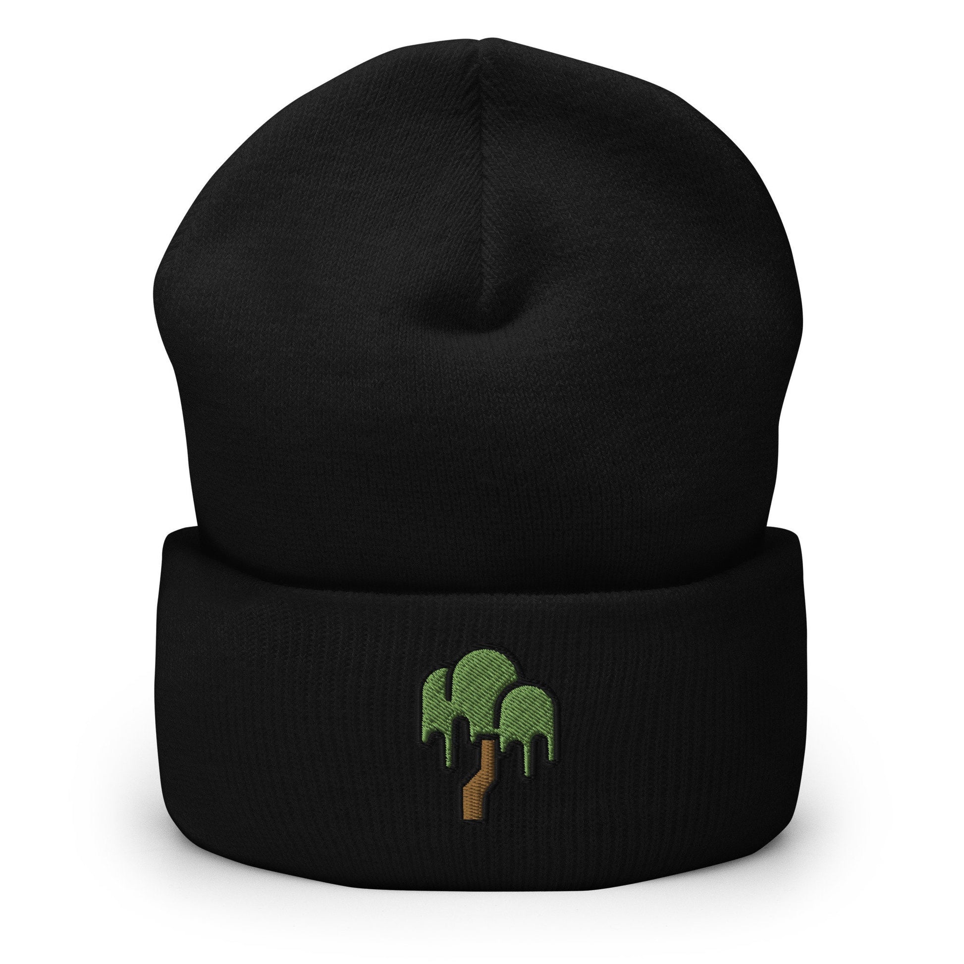 Weeping Willow Tree Embroidered Beanie, Handmade Cuffed Knit Unisex Slouchy Adult Winter Hat Cap Gift