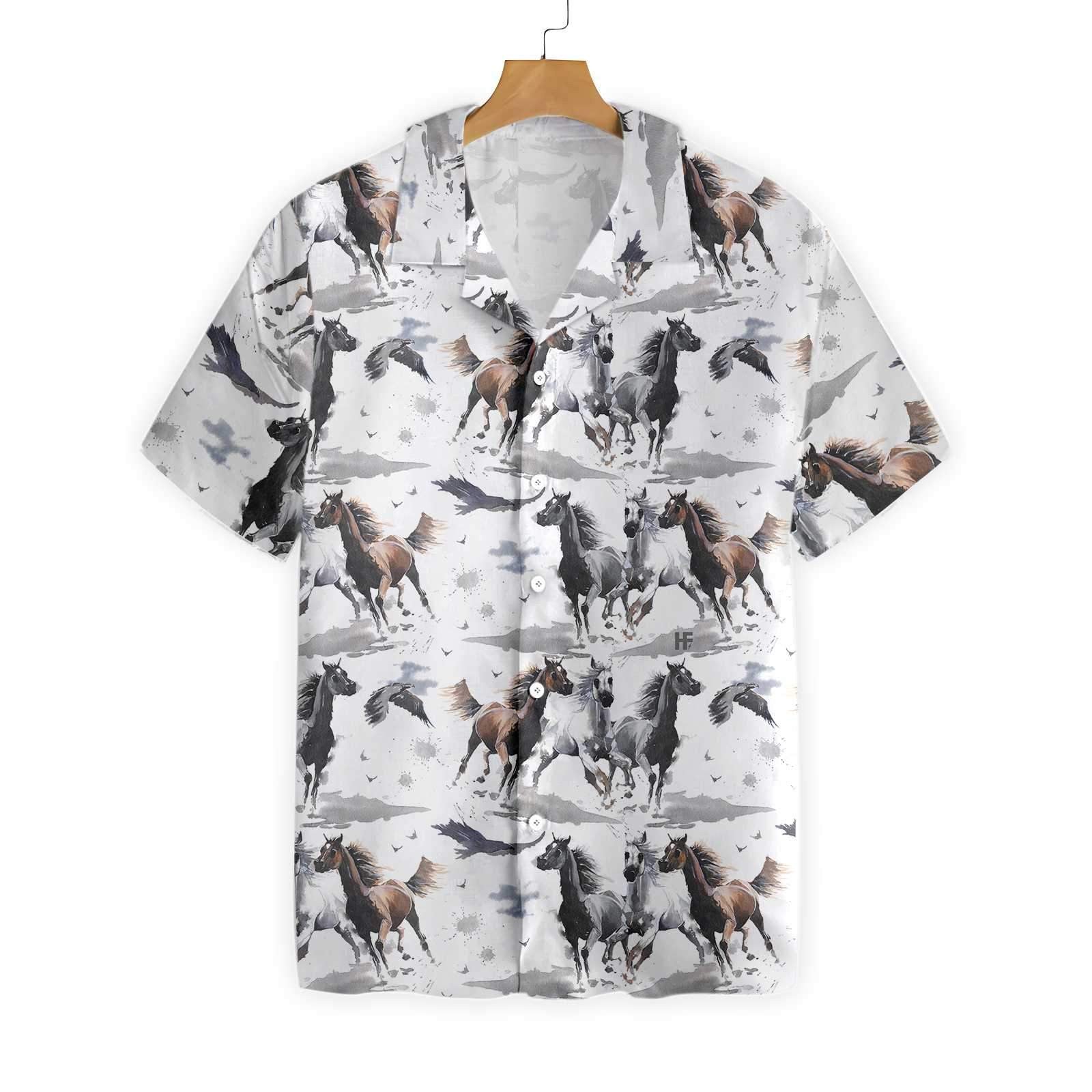 Wild And Free Racing Horses Hawaiian Shirt, Hwaiian For Gift