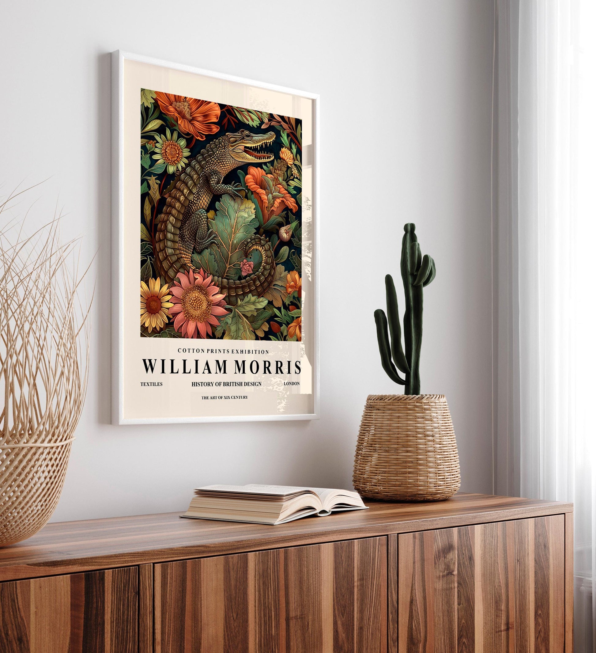 William Morris print, Crocodile wall art, Floral poster, Mid century print, Botanical decor