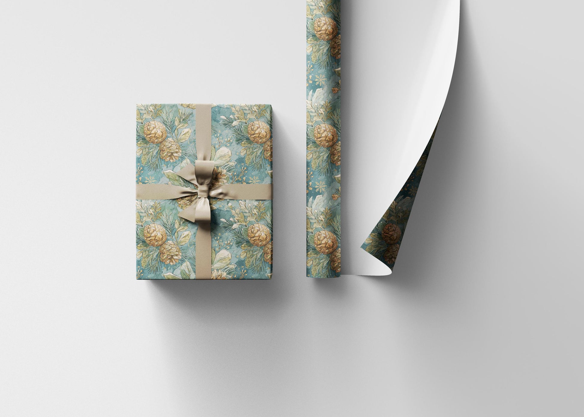 Winter Evergreen Wrapping Paper Roll, Pinecone and Tree Gift Wrap for Holiday and Christmas wrapping paper