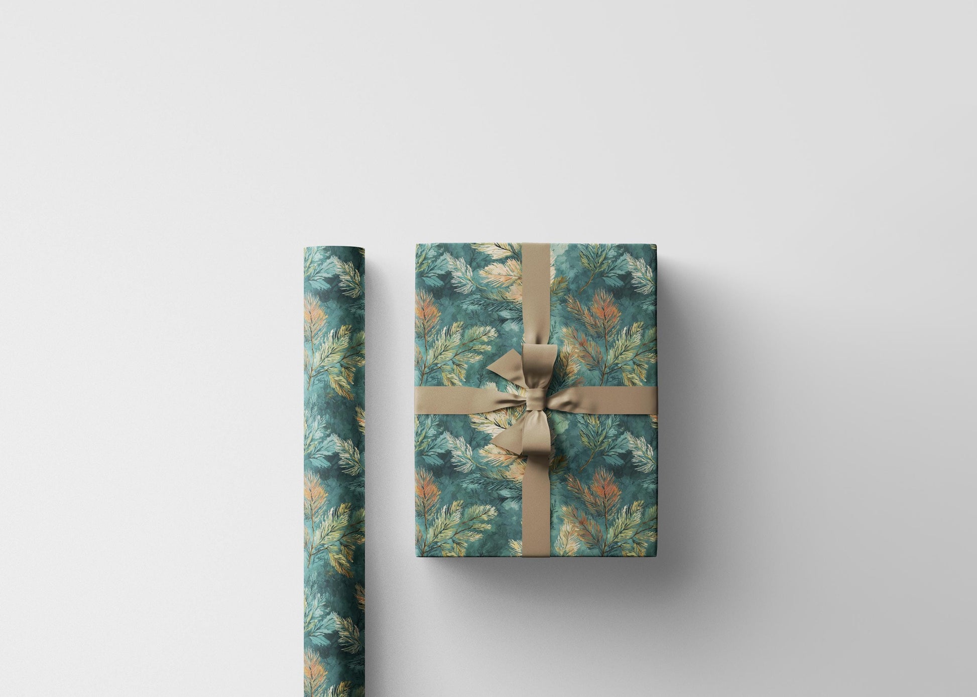 Winter Forest Holiday Wrapping Paper Roll, Pine Tree and Cone Gift Wrap for Christmas Gifts #17