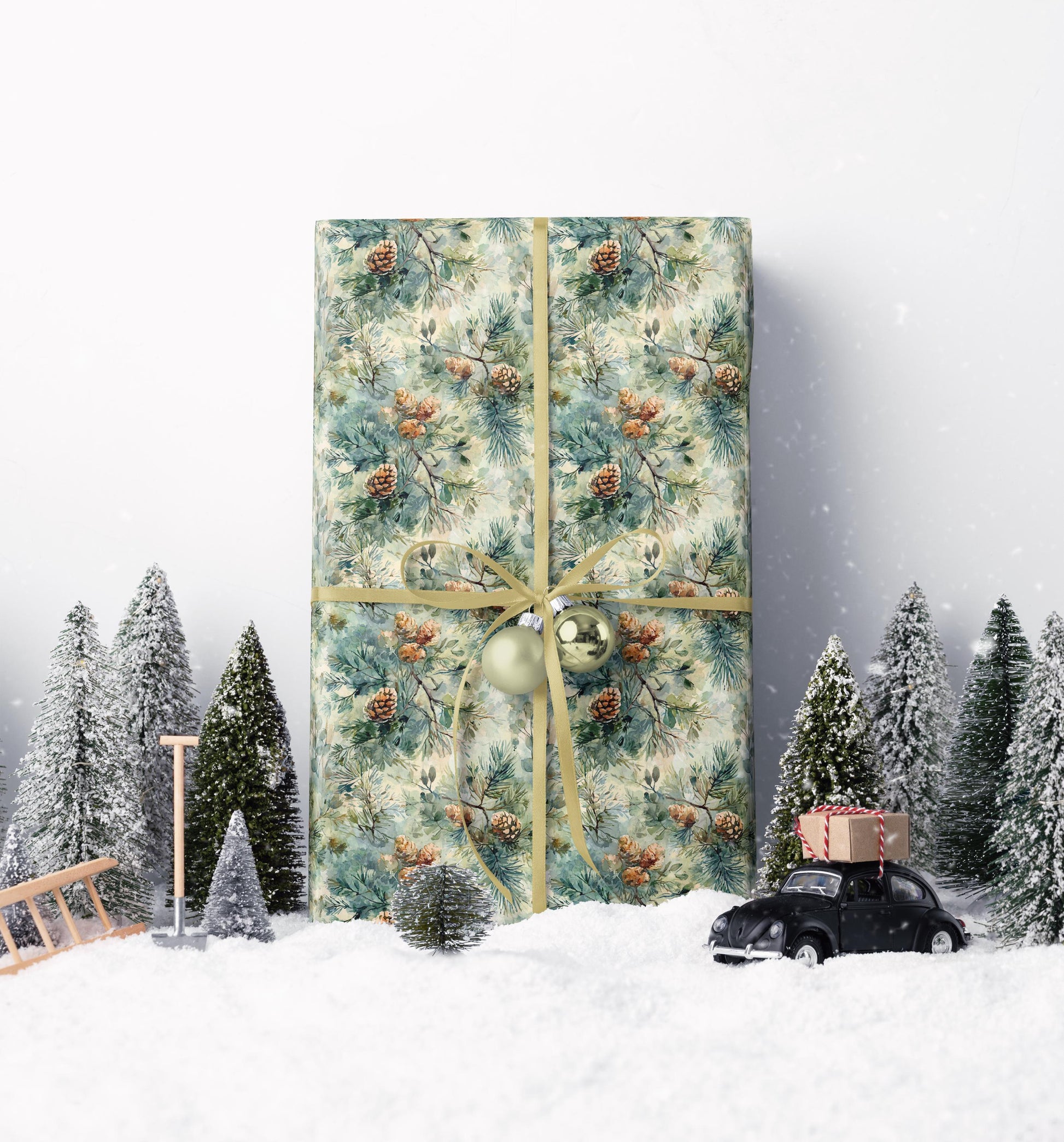 Winter Forest Wrapping Paper Roll, Pinecones and Trees Gift Wrap for Christmas and Holiday Packaging #1