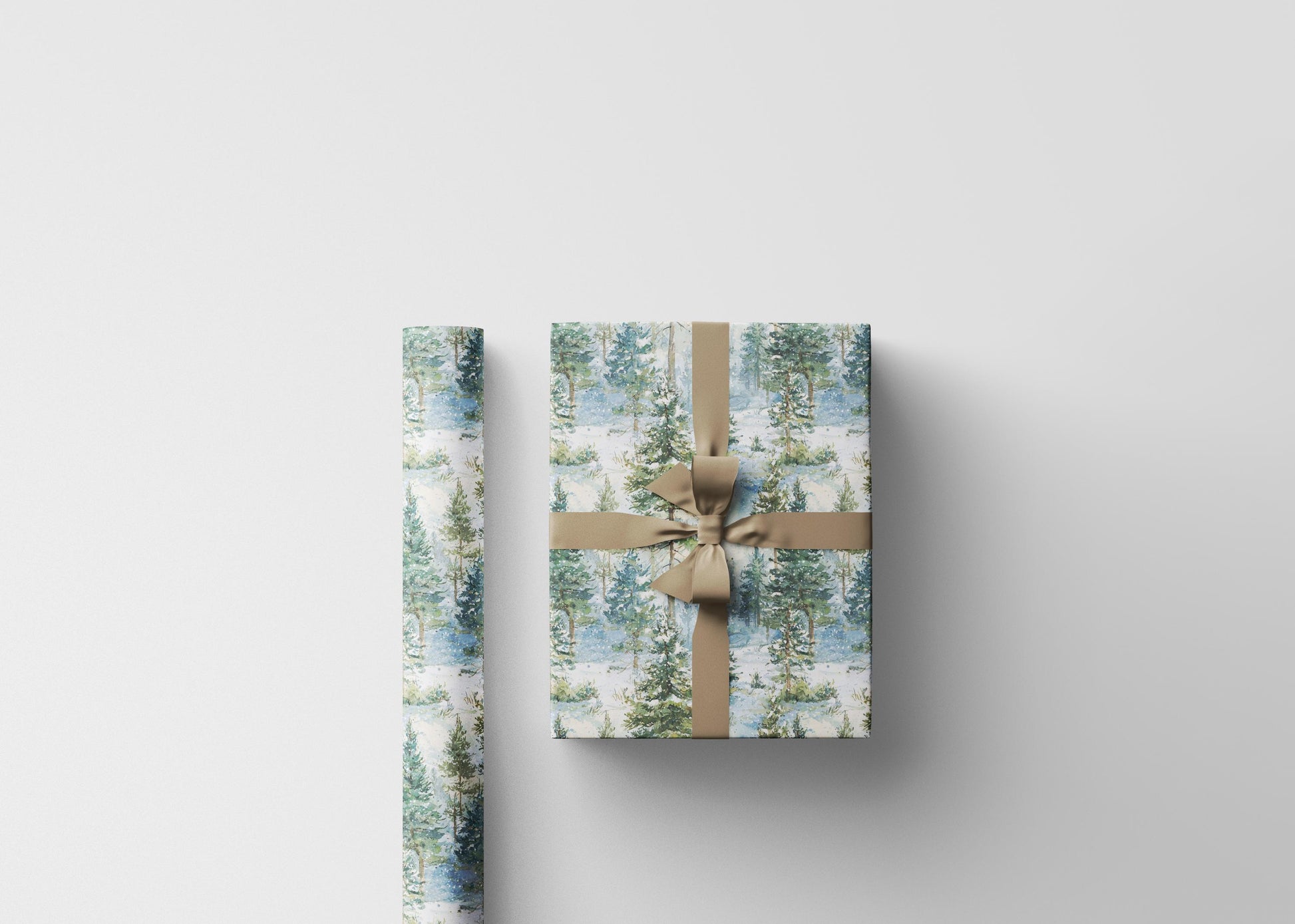 Winter Pine Tree Wrapping Paper Roll, Holiday Gift Wrap with Forest and Pinecone Design #29