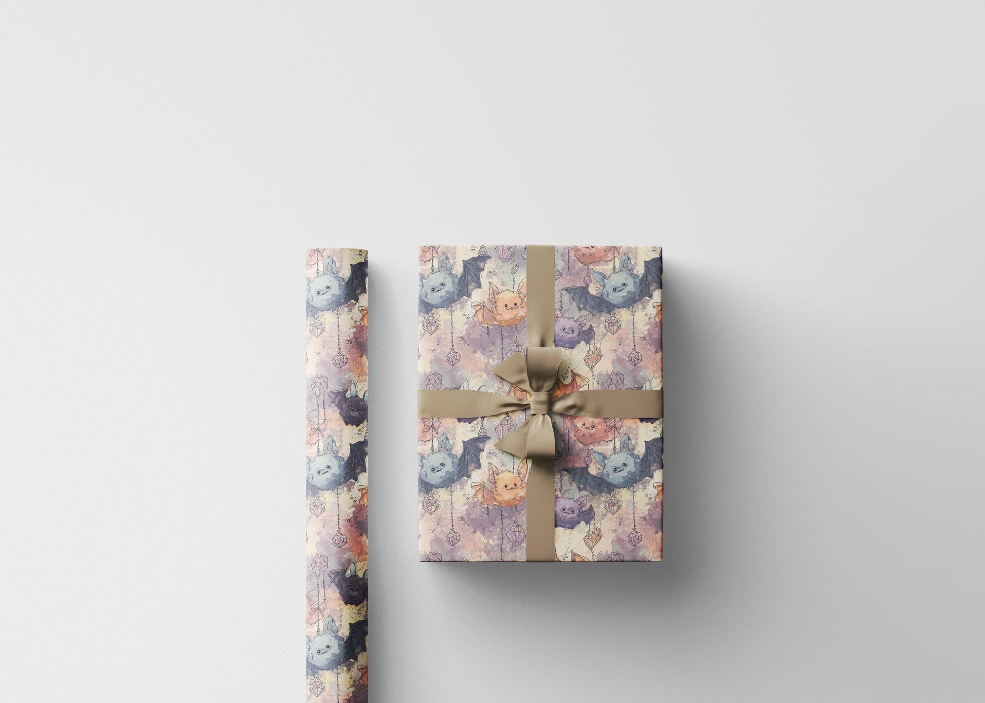 Witchy Bat Baby Shower Wrapping Paper, Creepy Cute Pastel Goth Gift Wrap for Halloween and Alternative Birthdays #13