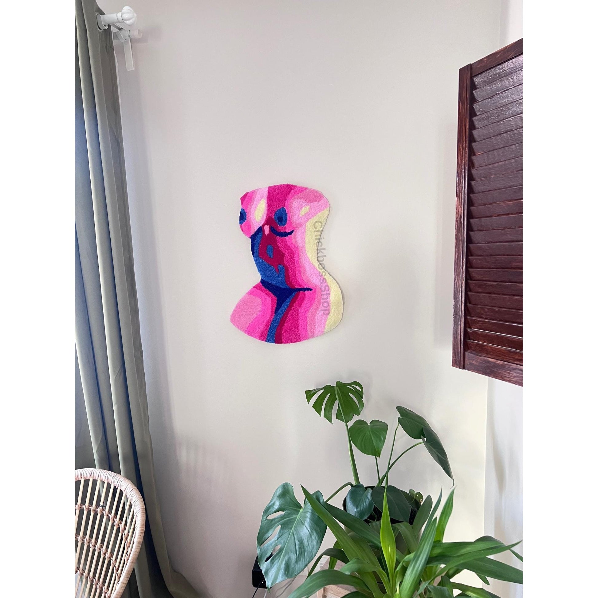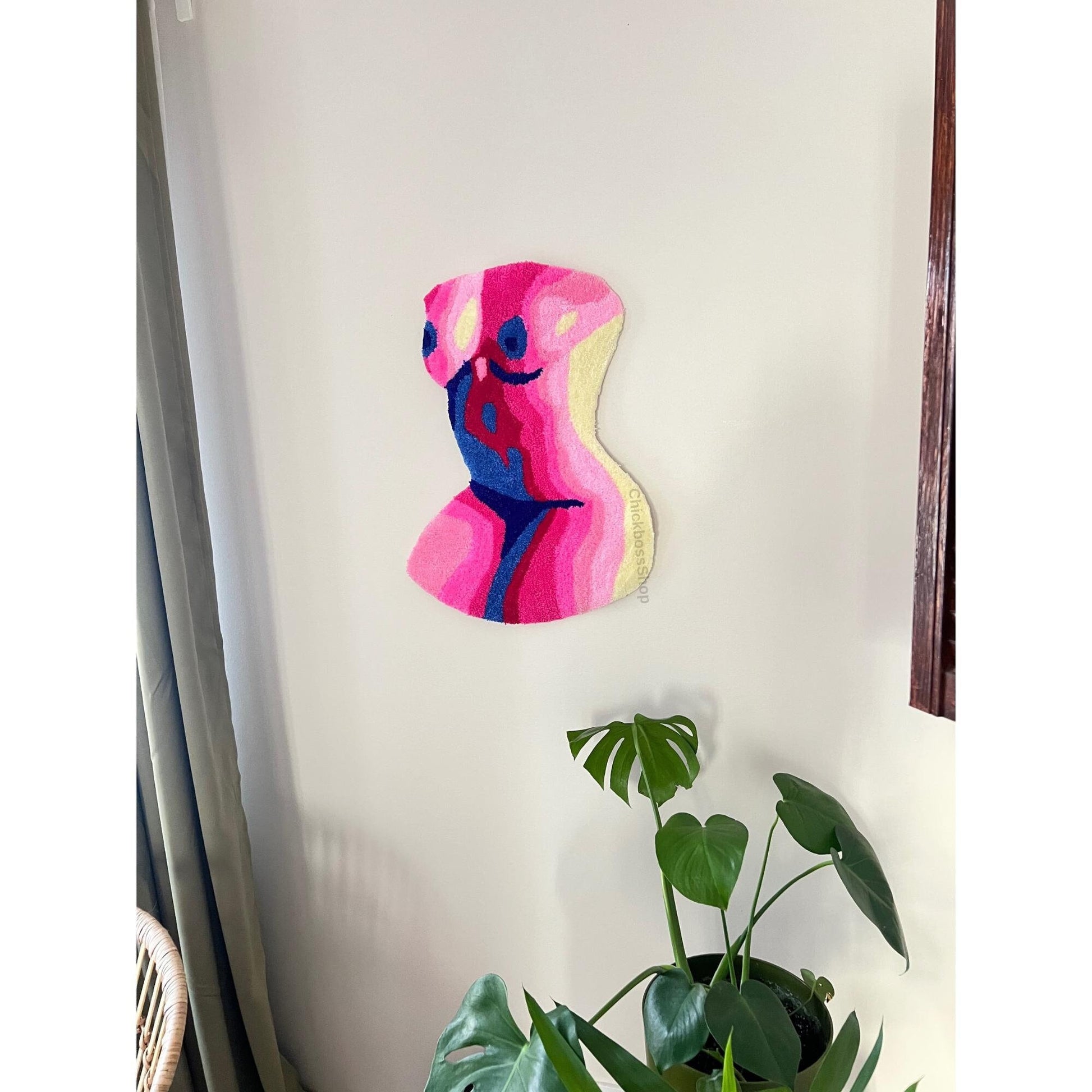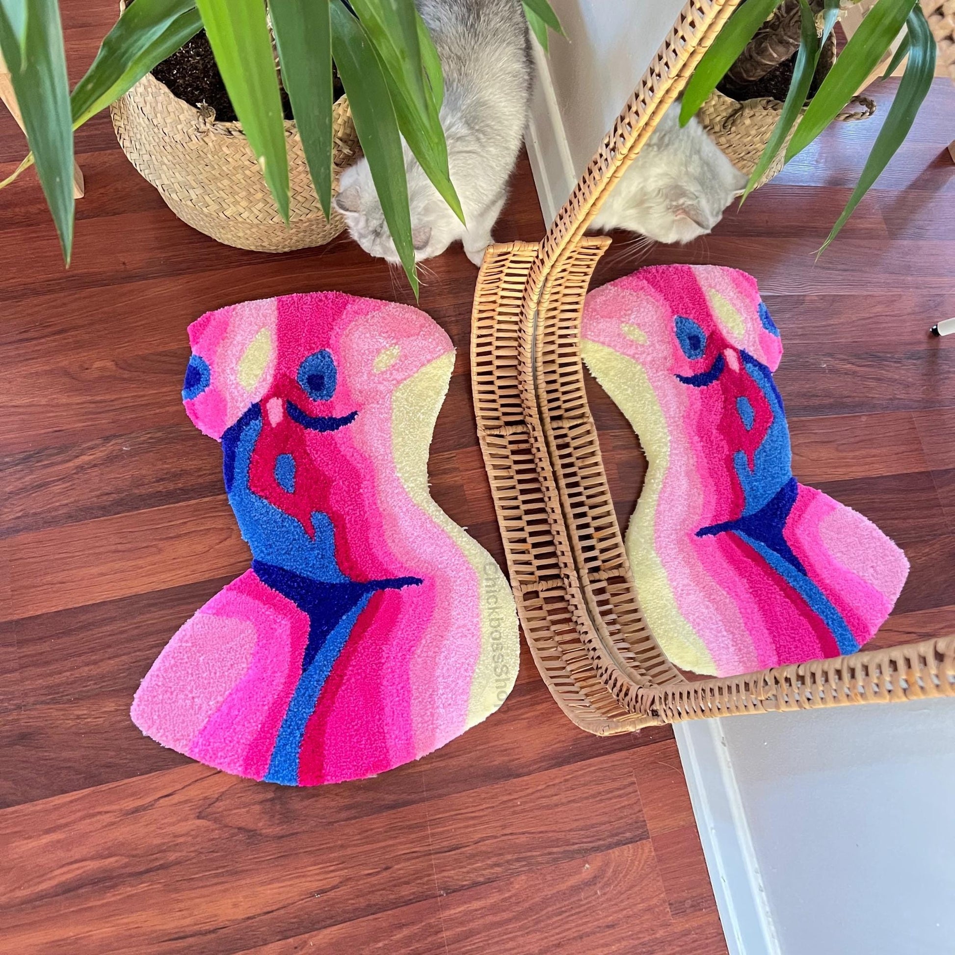 Woman Body Tufted Rug | Pink Abstract Female Tufted Rug | Handmade Aesthetic Decor Tufting Rug