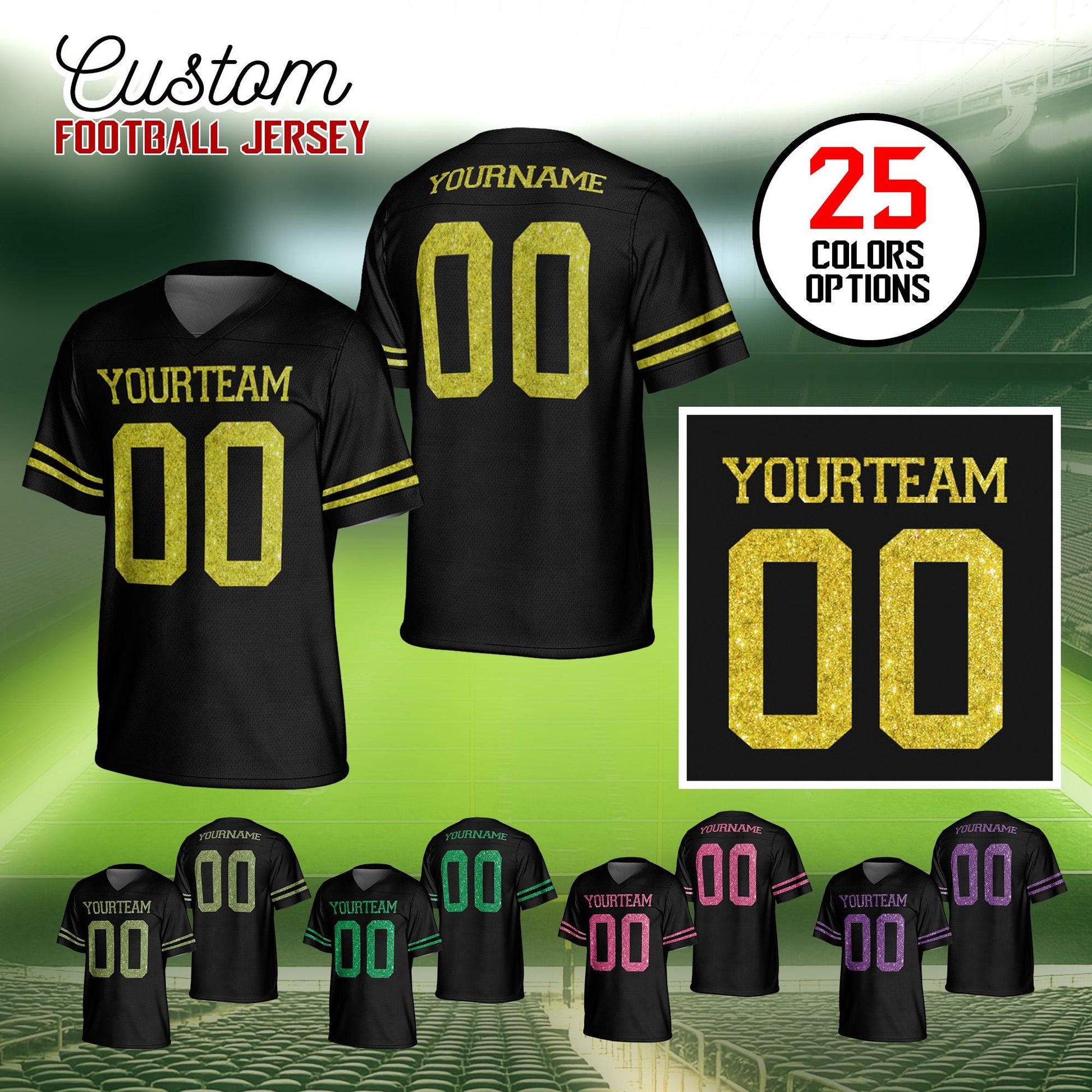 Women Glitter Pattern Personalized Football Jersey, Custom Glitter Jersey Shirt, Customized Glitter Name And Number Jersey For Sport Fan