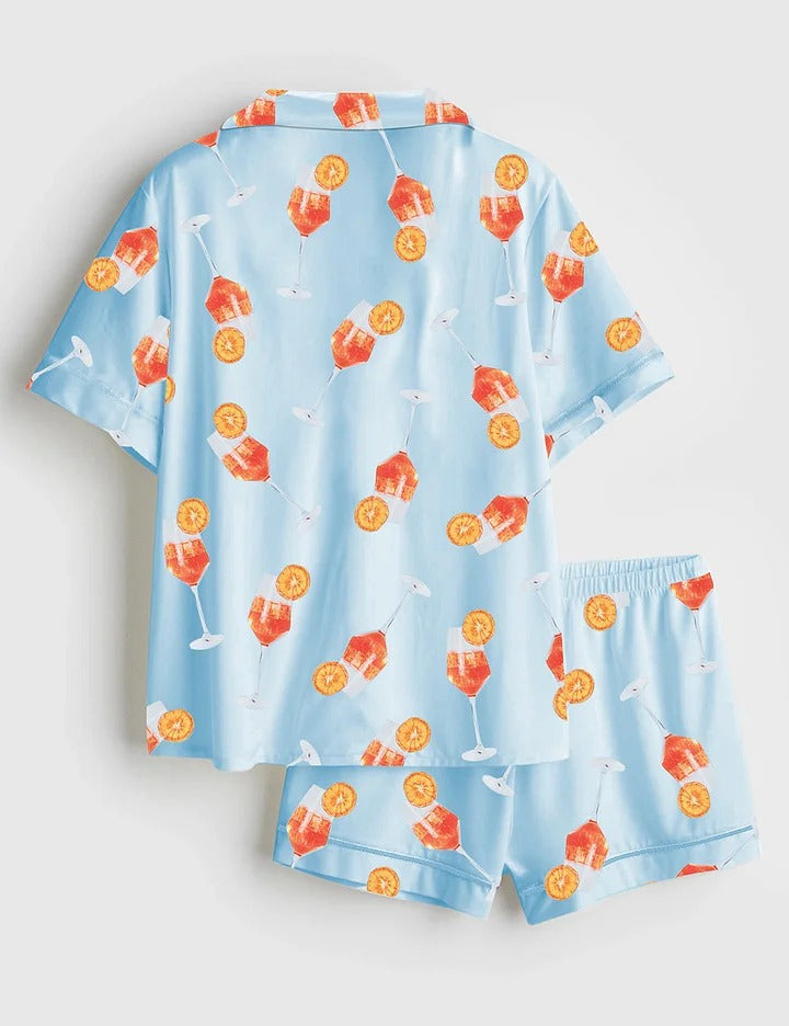 Women’s Aperol Spritz Cocktail Short Sleeve Satin Pajama Set
