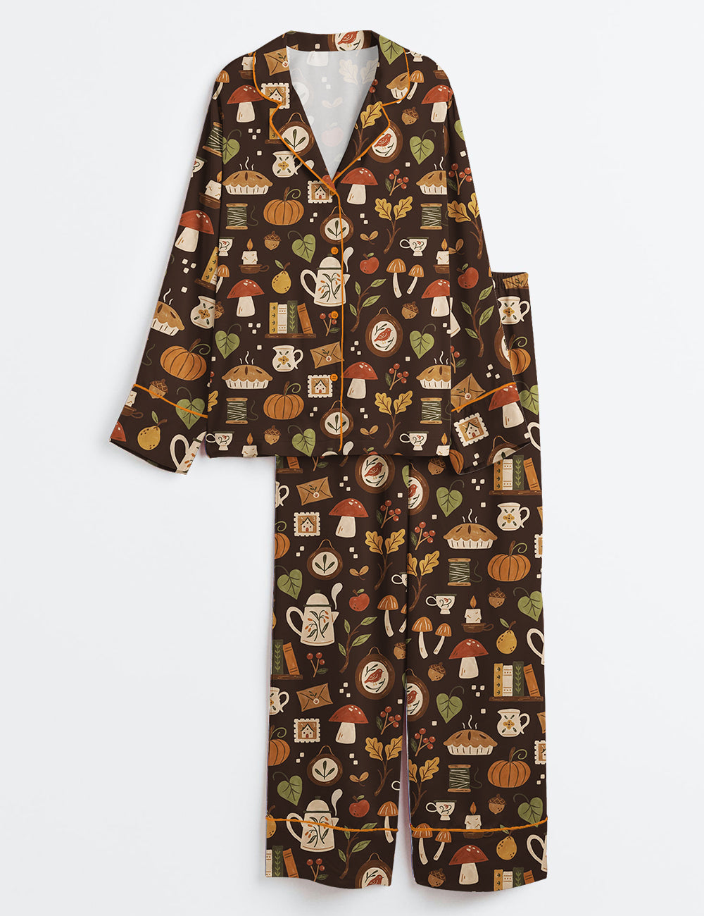Women’s Cozy Vintage Autumn Long Sleeve Satin Pajama Set