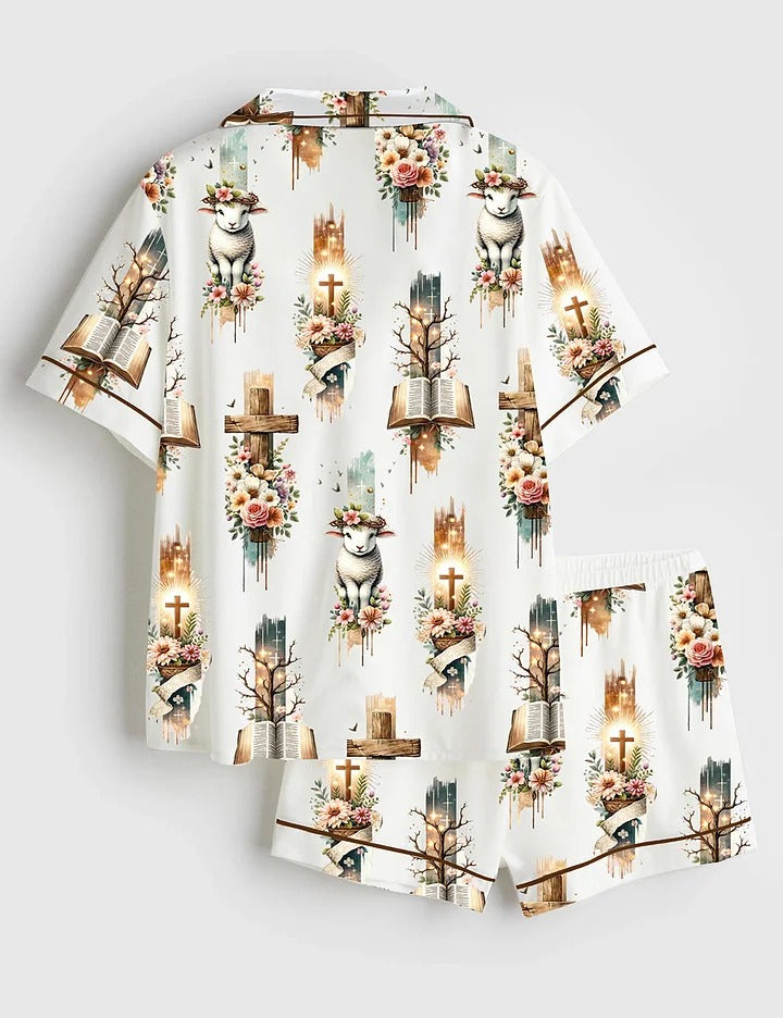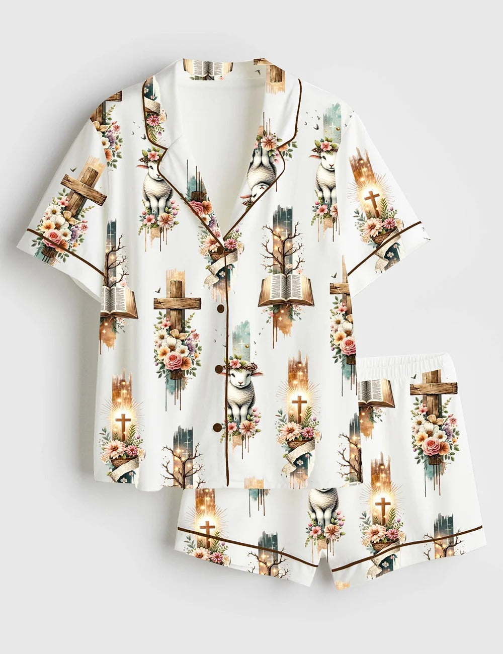 Women’s Easter Bible Verse Jesus Short Sleeve Satin Pajama Set