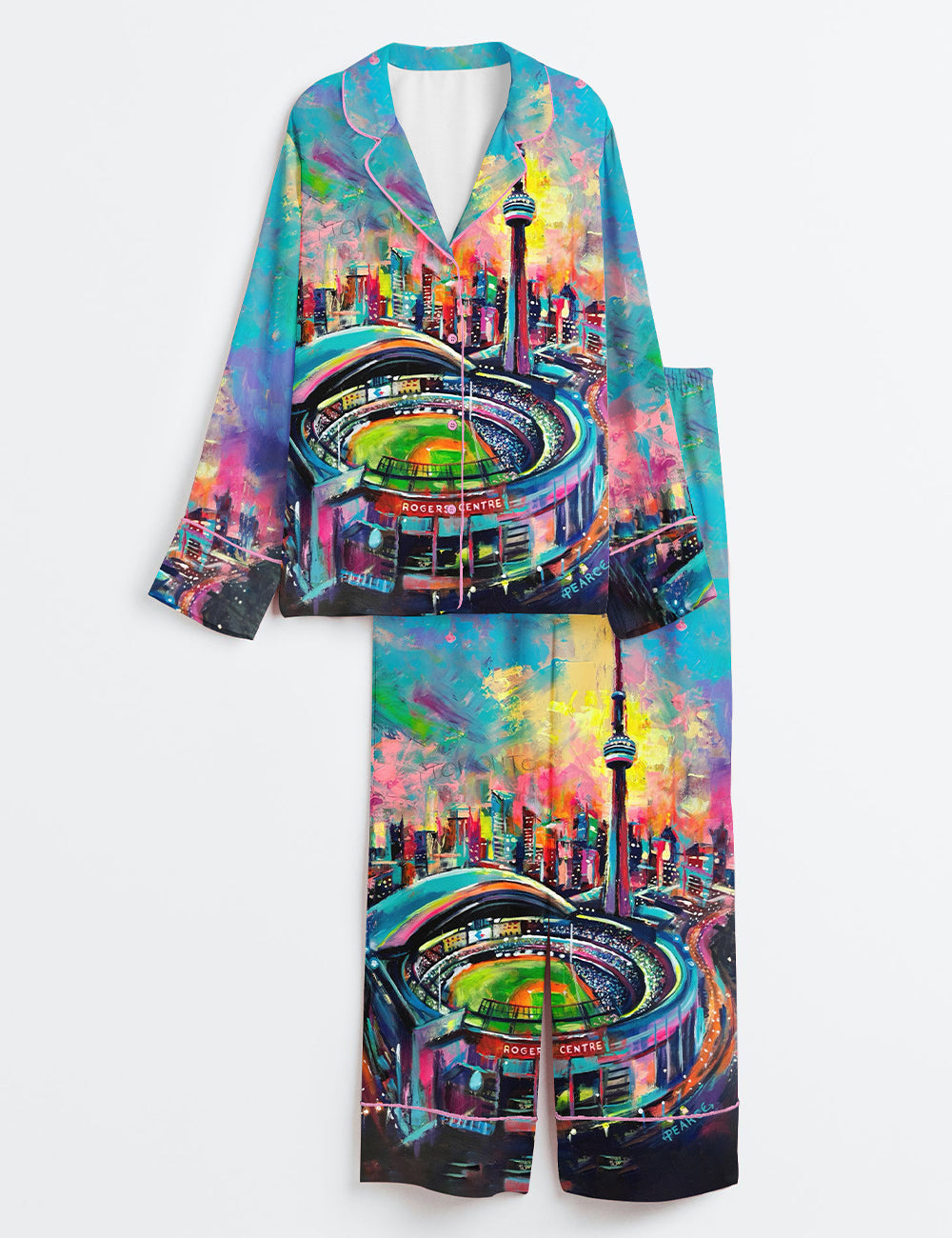 Women’s Go Jays Go Toronto Baseball World Series Long Sleeve Satin Pajama Set