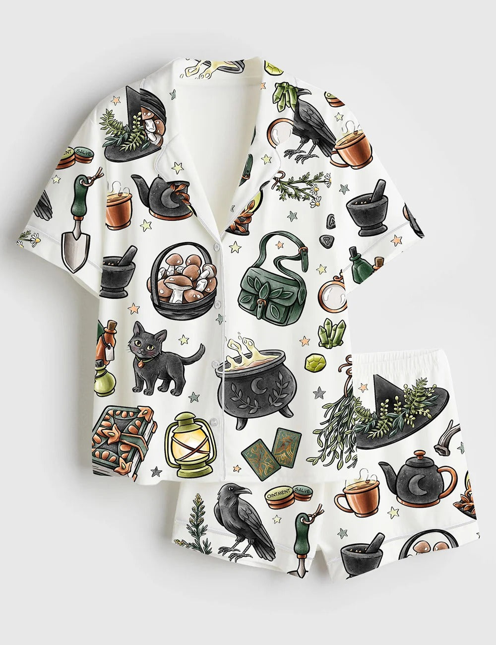 Women’s Halloween Witch Short Sleeve Satin Pajama Set