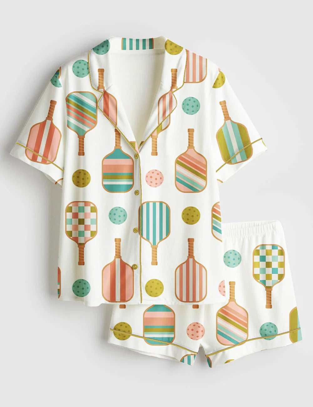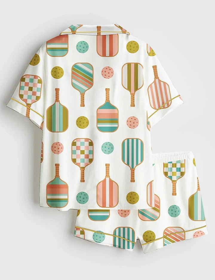 Women’s Pickleball Paddle And Ball Short Sleeve Satin Pajama Set