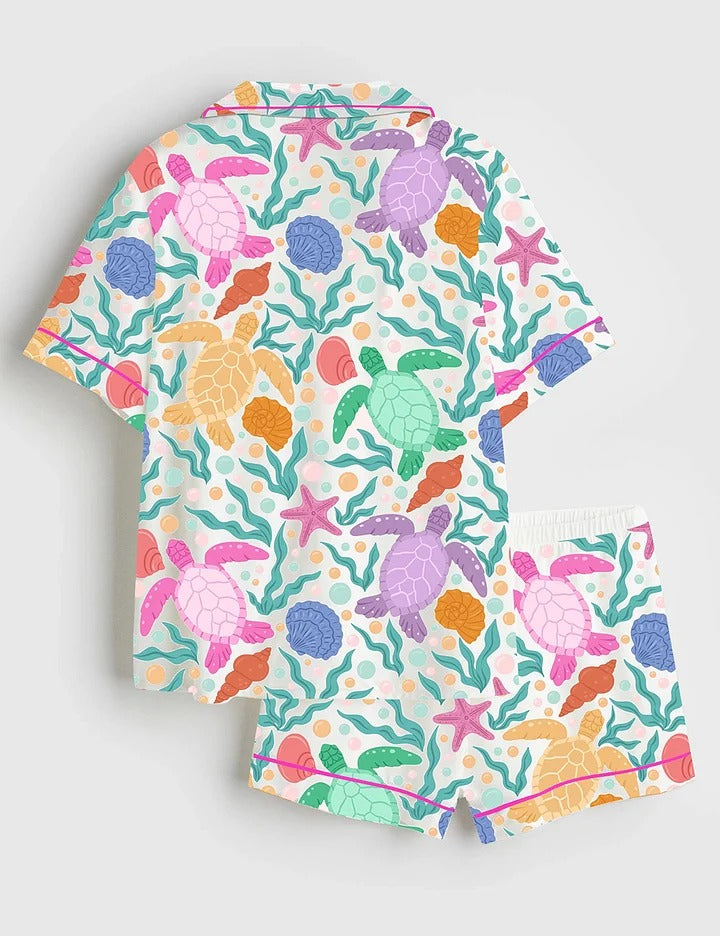 Women’s Seaturtles Summer Pattern Short Sleeve Satin Pajama Set
