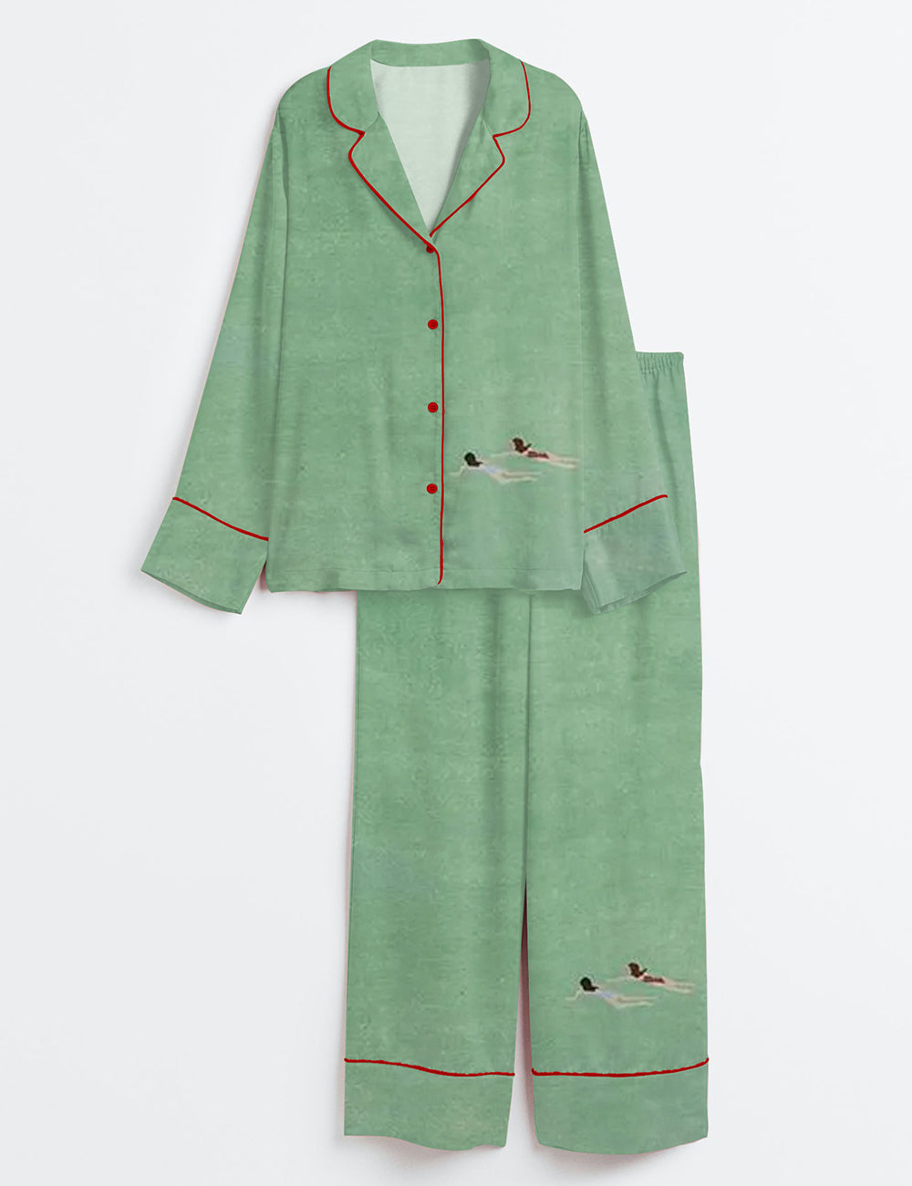 Women’s Two Girls Swimming Long Sleeve Satin Pajama Set