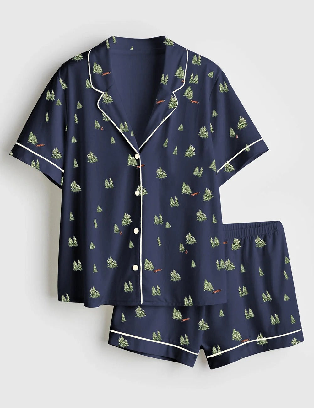 Women's Christmas Tree Short Sleeve Satin Pajama Set