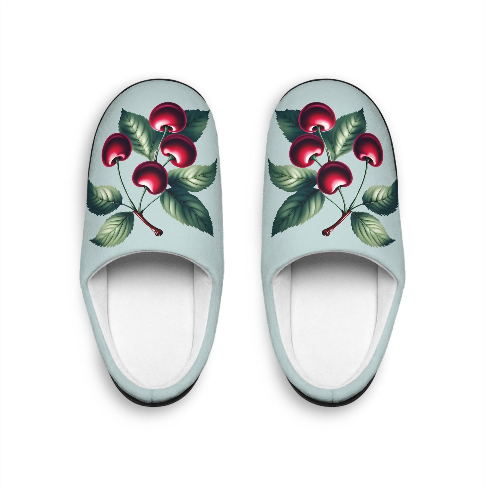 Women's Houseslipper MintGreen Color Cherry Toile Women'sSlippers Dark Redcherry SoftFleece Houseshoes Slippers, Anti-Skid CozyHouseShoes
