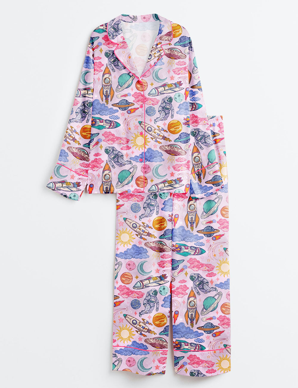 Women's Rocket Man Space Long Sleeve Satin Pajama Set