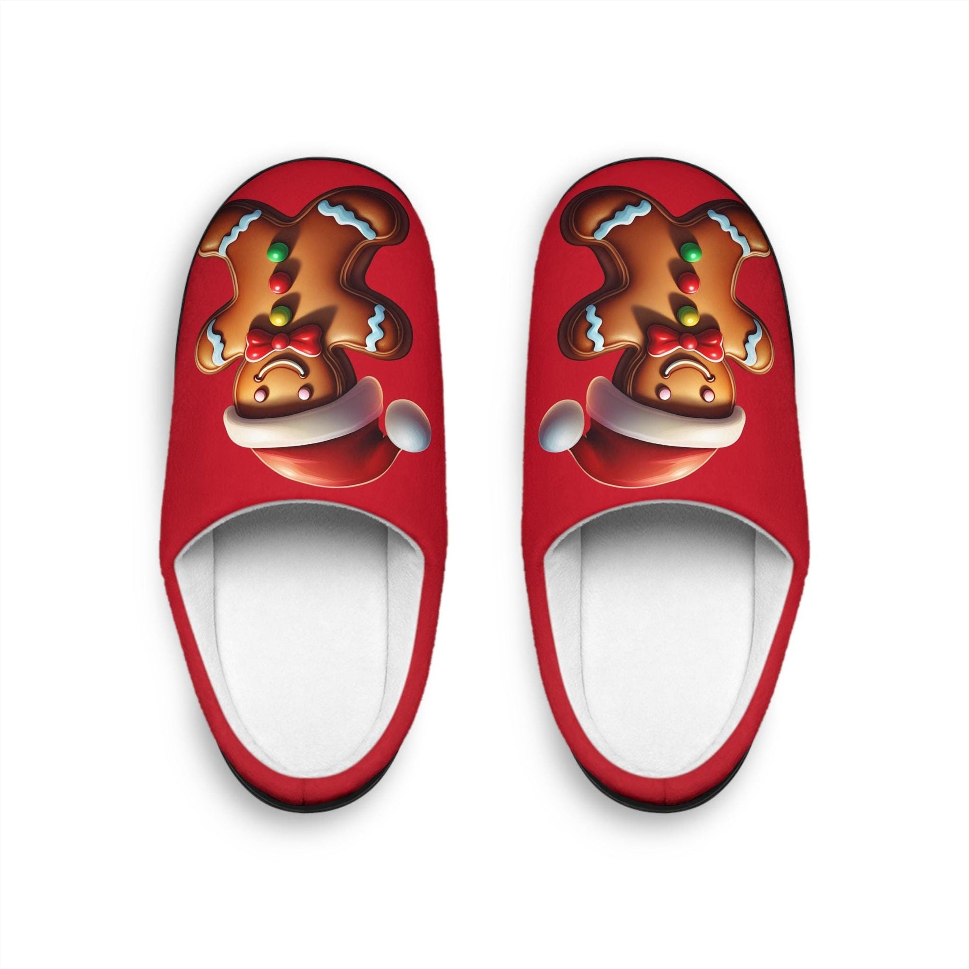 Women's Slippers Christmas Giftfor Her Red HouseSlipper with GingerbreadMan Design Holiday Indoor Shoes Cozy Footwear Santa Hat Slipper