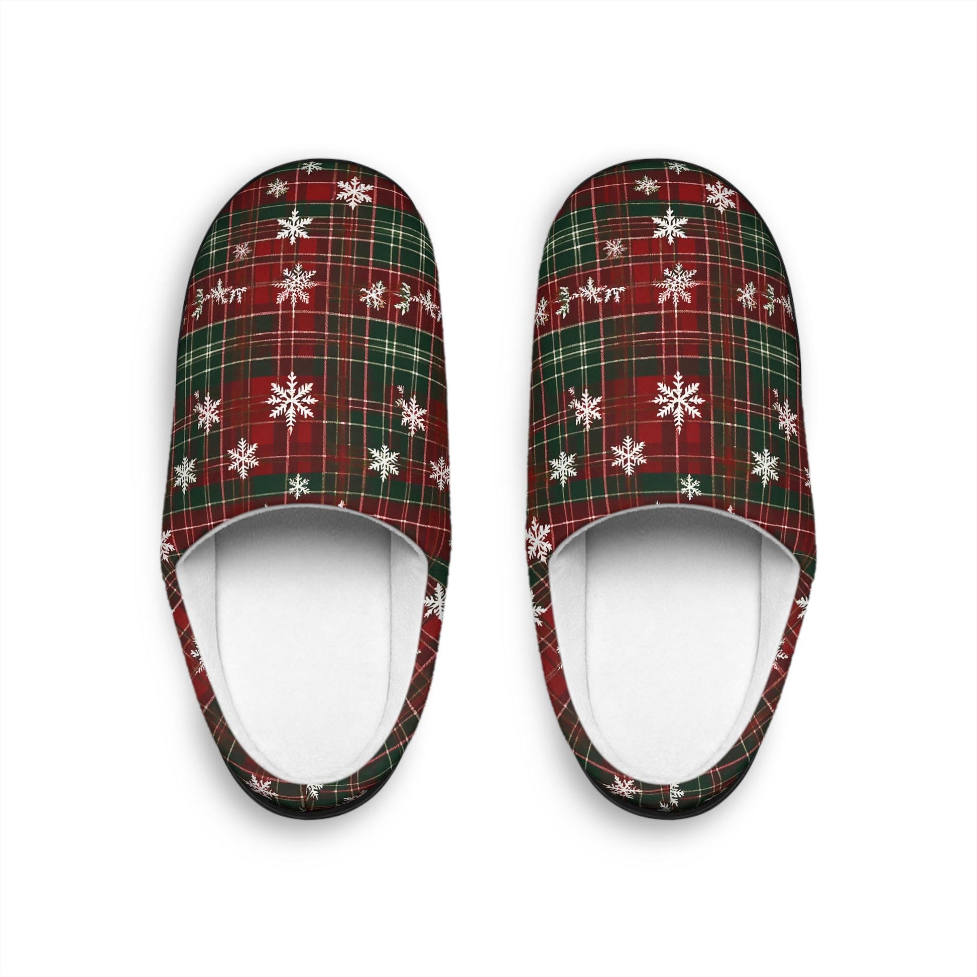 Women's Slippers WinterSnowflake Red Tartan Plaid Pattern, Matching PajamaPants available, Indoor Footwear, Slipper Giftful, Cozy HouseShoes
