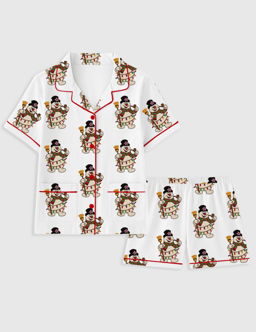 Women's Snowman Christmas Merry Christmas Movies Short Sleeve Pocket Cotton Pajama Set