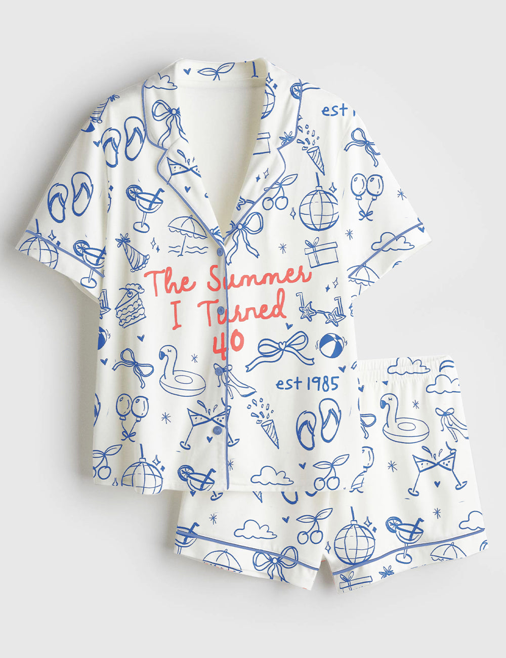 Women's Summer 40th Birthday Trip Short Sleeve Satin Pajama Set