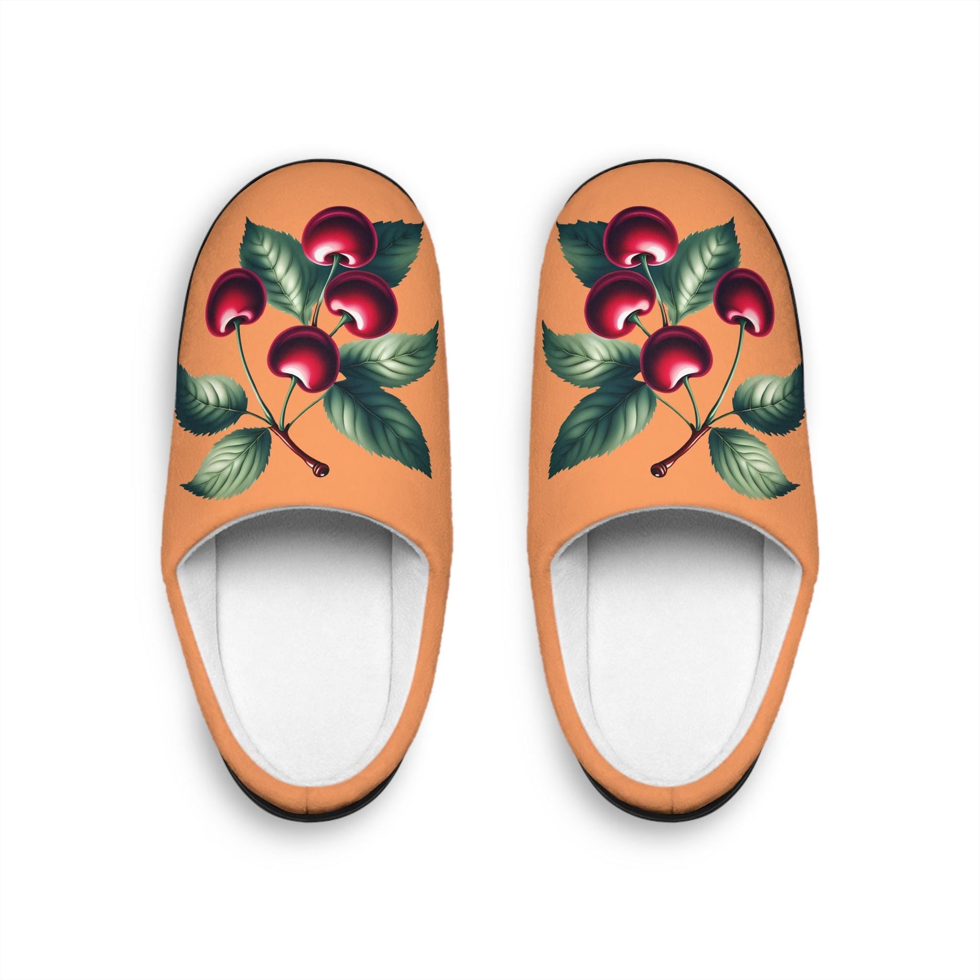 Women'sSlippers Cherry-Designed Cozy Houseslippers Orangebackground IndoorSlippers Fruit Cherry Slippers Cherry Lovers Gift Fruit Slippers