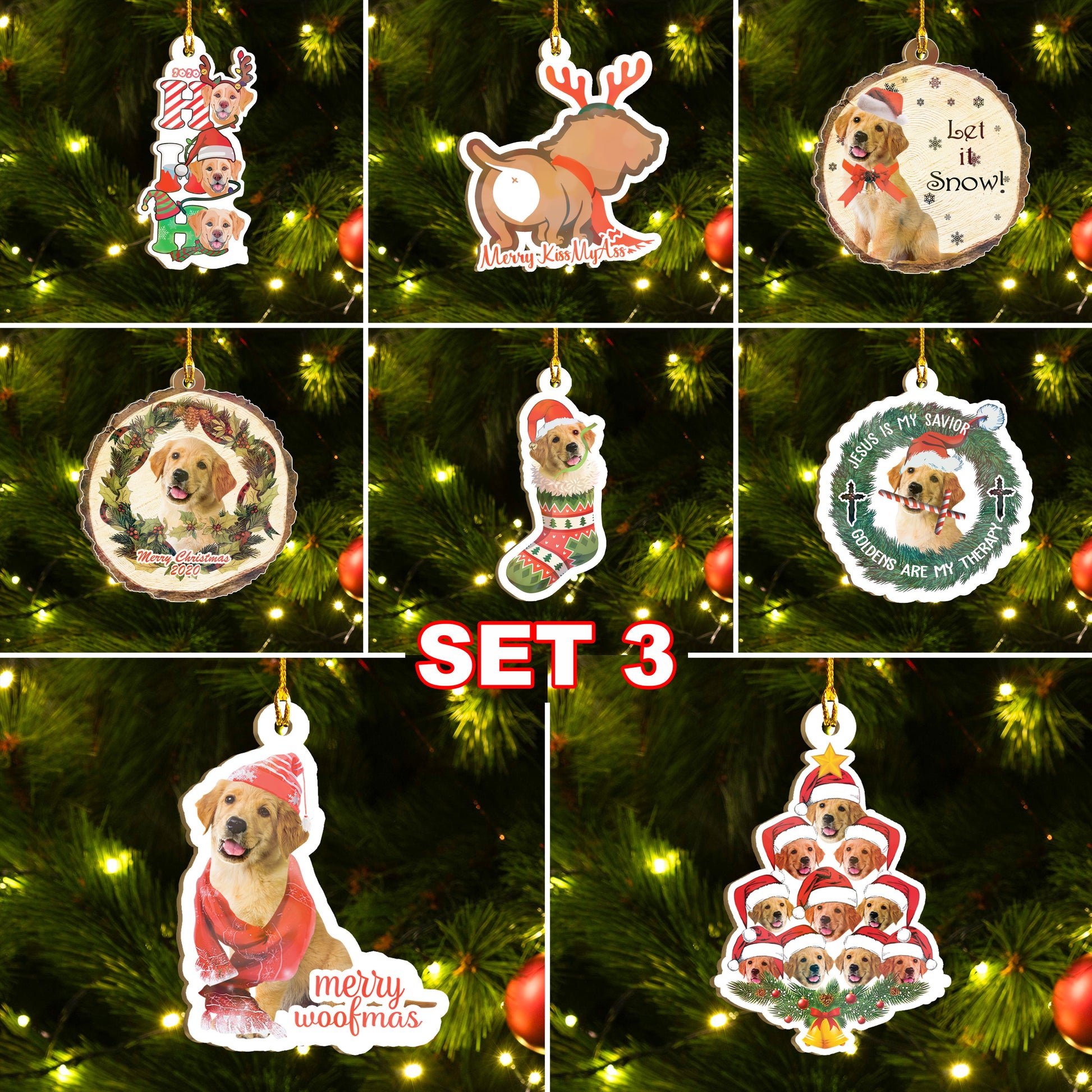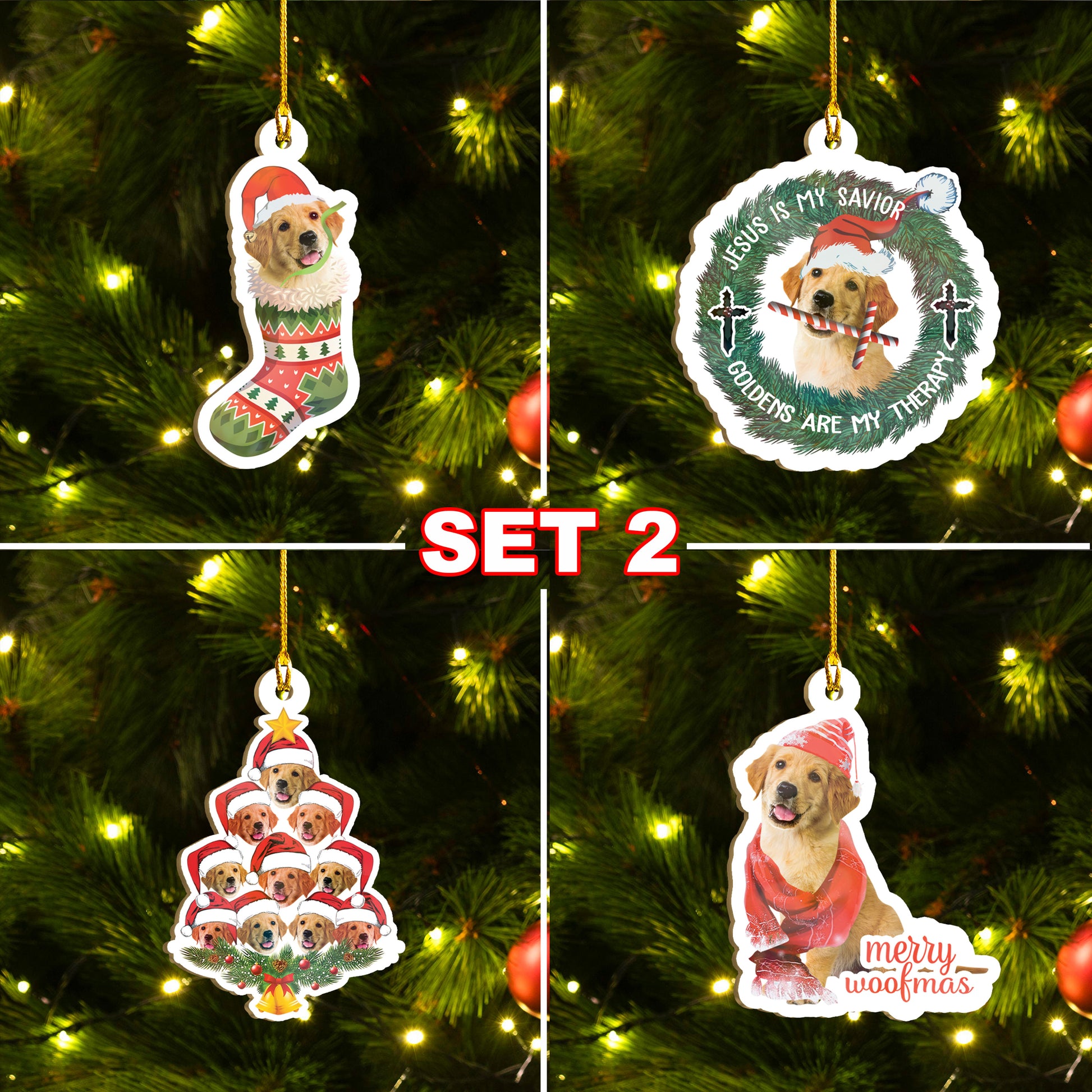 Xmas Golden Retriever Ornaments Set, Merry Woofmas Ornaments Set, Funny Christmas Ornaments Family Gift Idea For Dog Lover