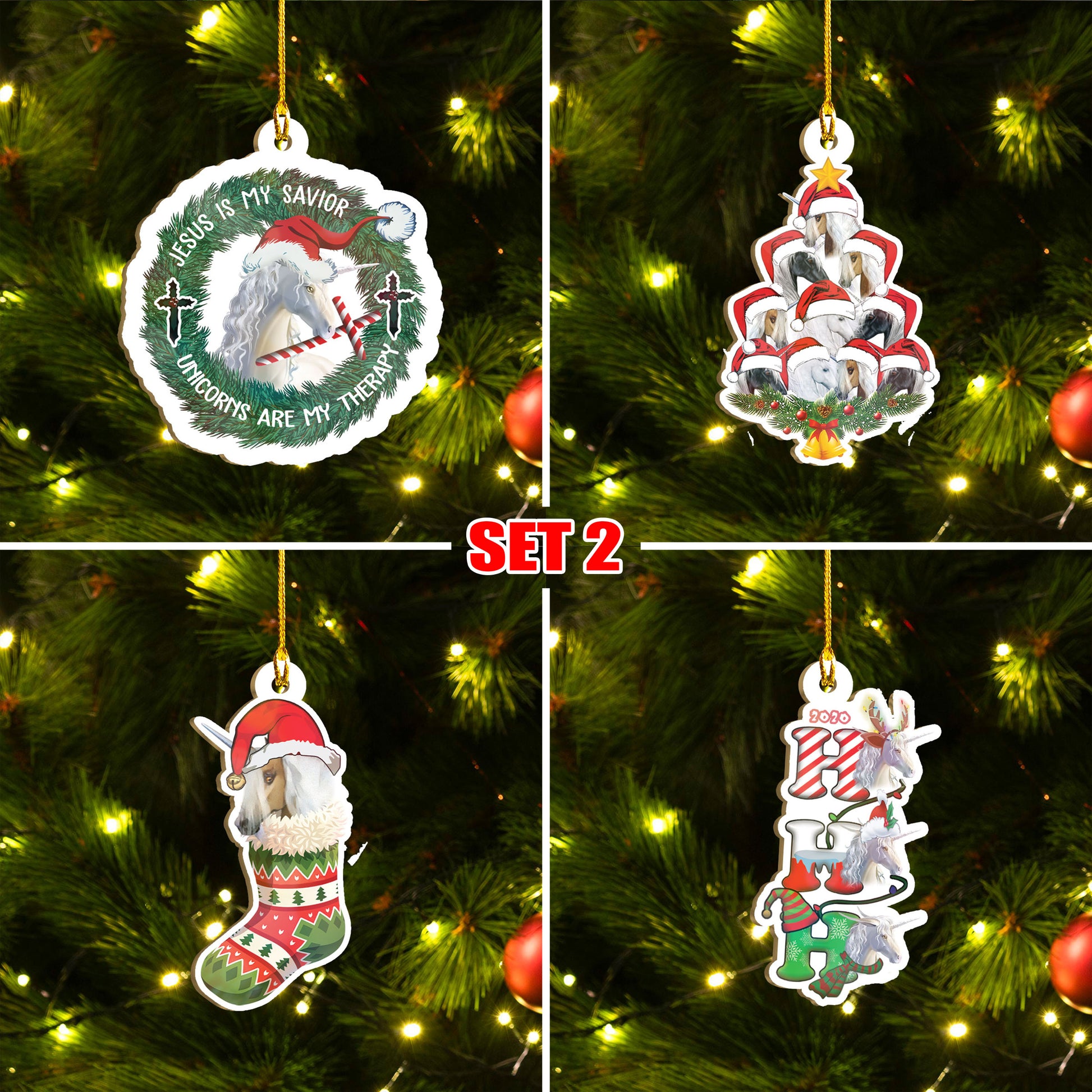 Xmas Unicorn Ornaments Set, Merry Christmas Ornaments Set, Funny Christmas Ornaments Family Gift Idea For Unicorn Lover