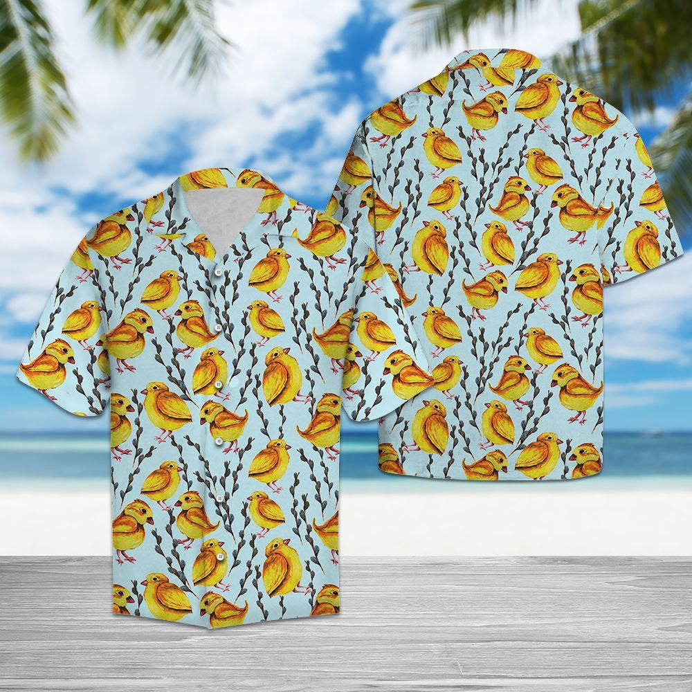 Yellow Chicken Babies On Blue Pattern Hawaiian Shirt, Hwaiian For Gift