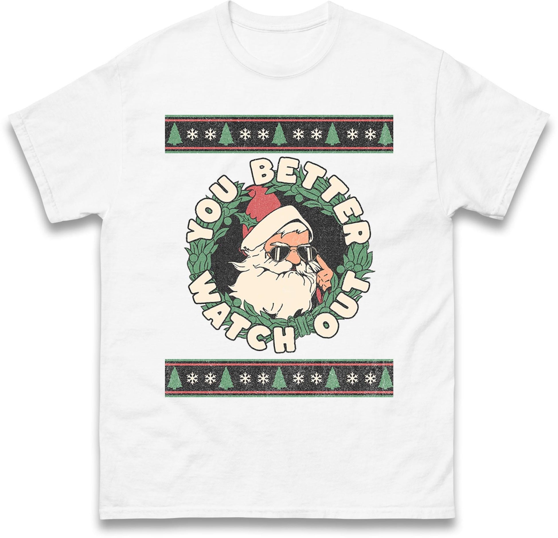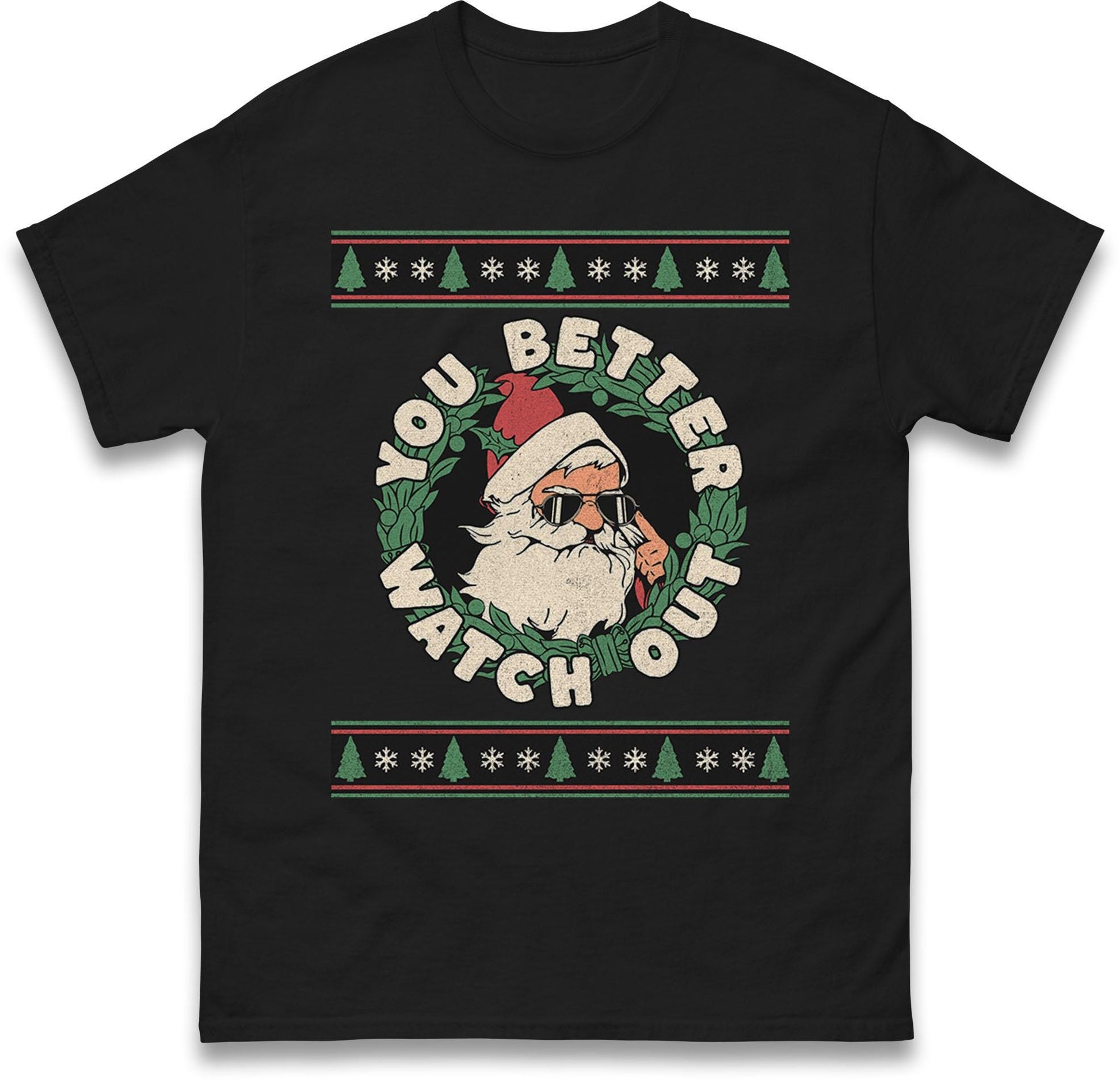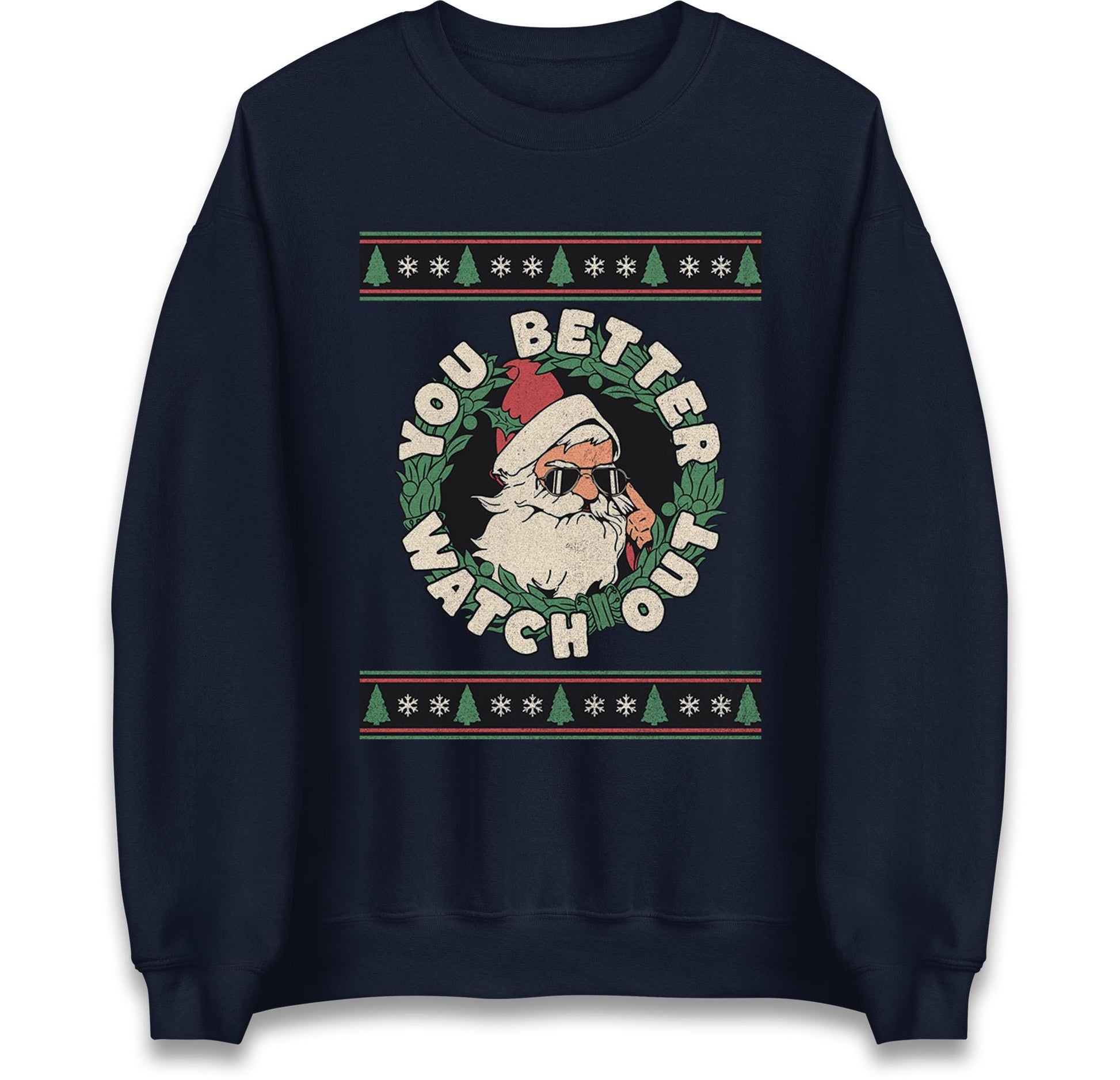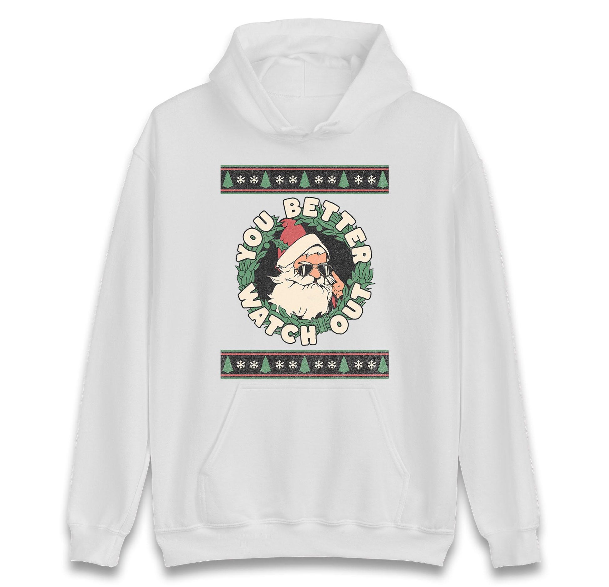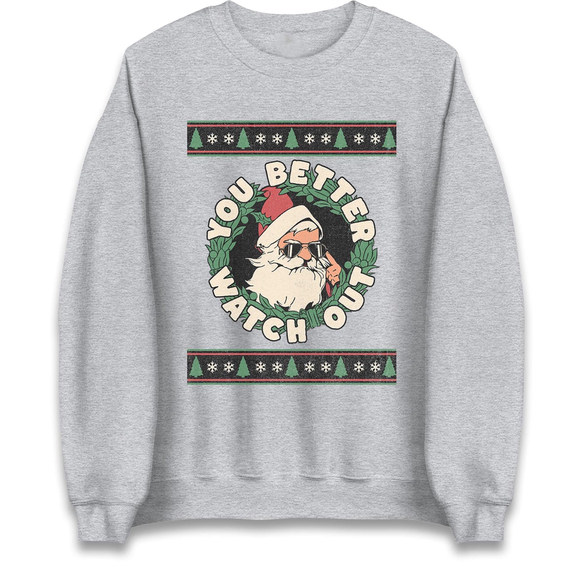 You Better Watch Out Santa Jumper, Funny Cool Xmas Hoodie, Retro Santa Claus Christmas T Shirt, Humorous Holiday Gift Party Top