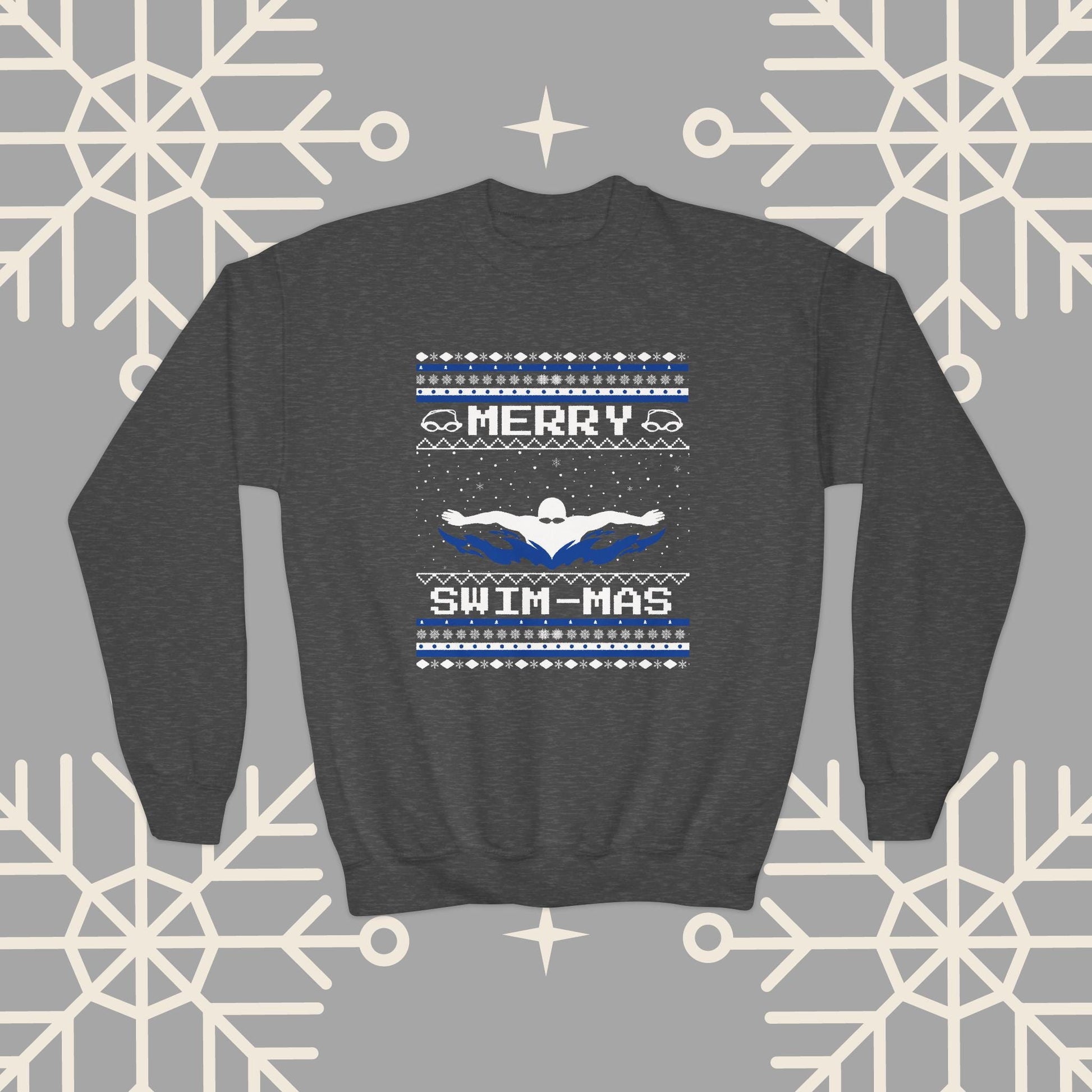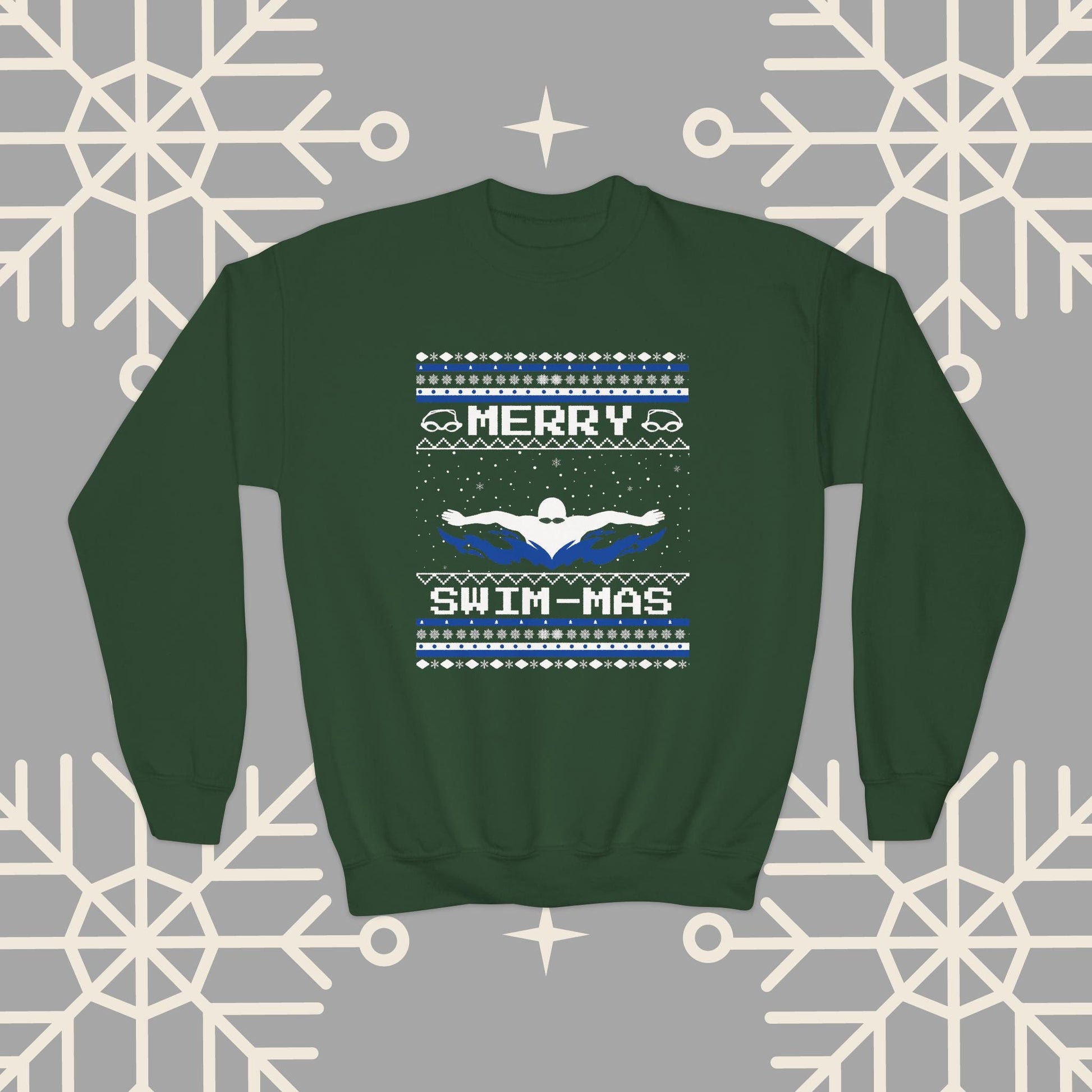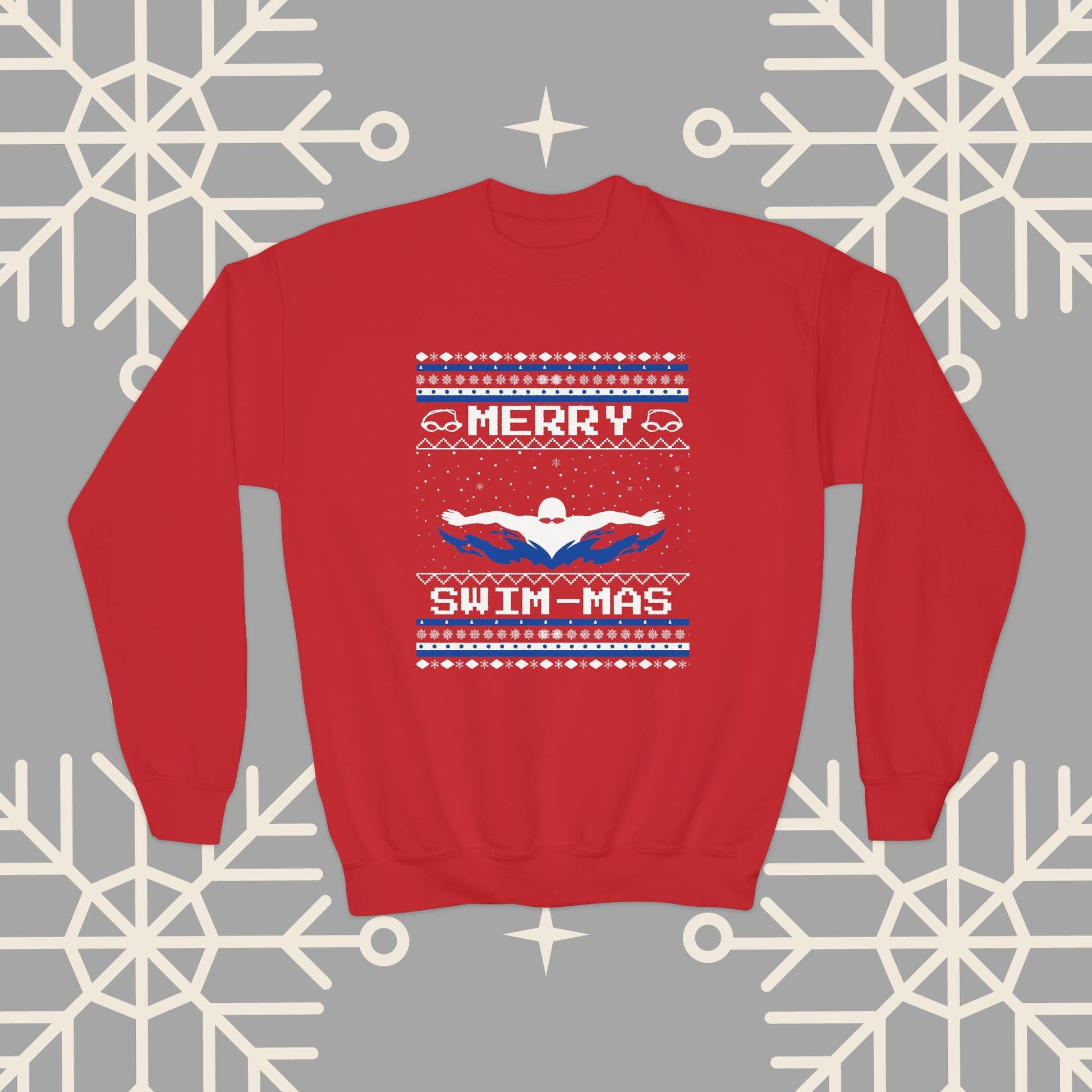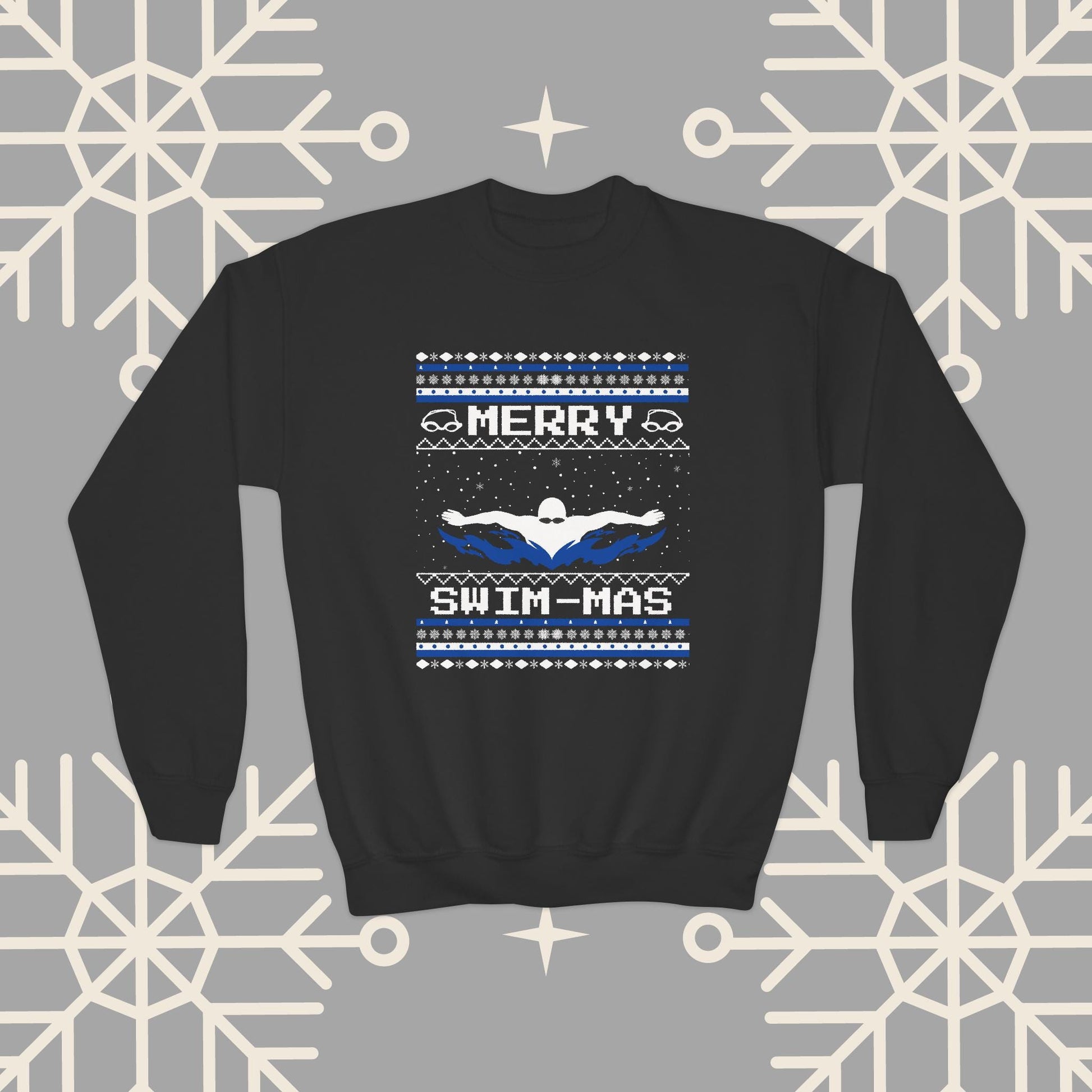 Youth Merry Swim-mas Ugly Christmas , Swimming Christmas Sweatshirt for Kids, Swim Shirt for Boys, Gift for Swimmer