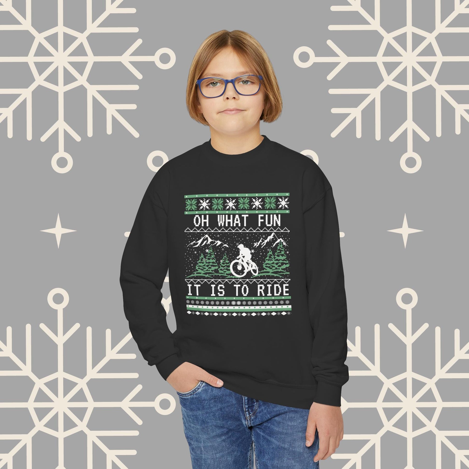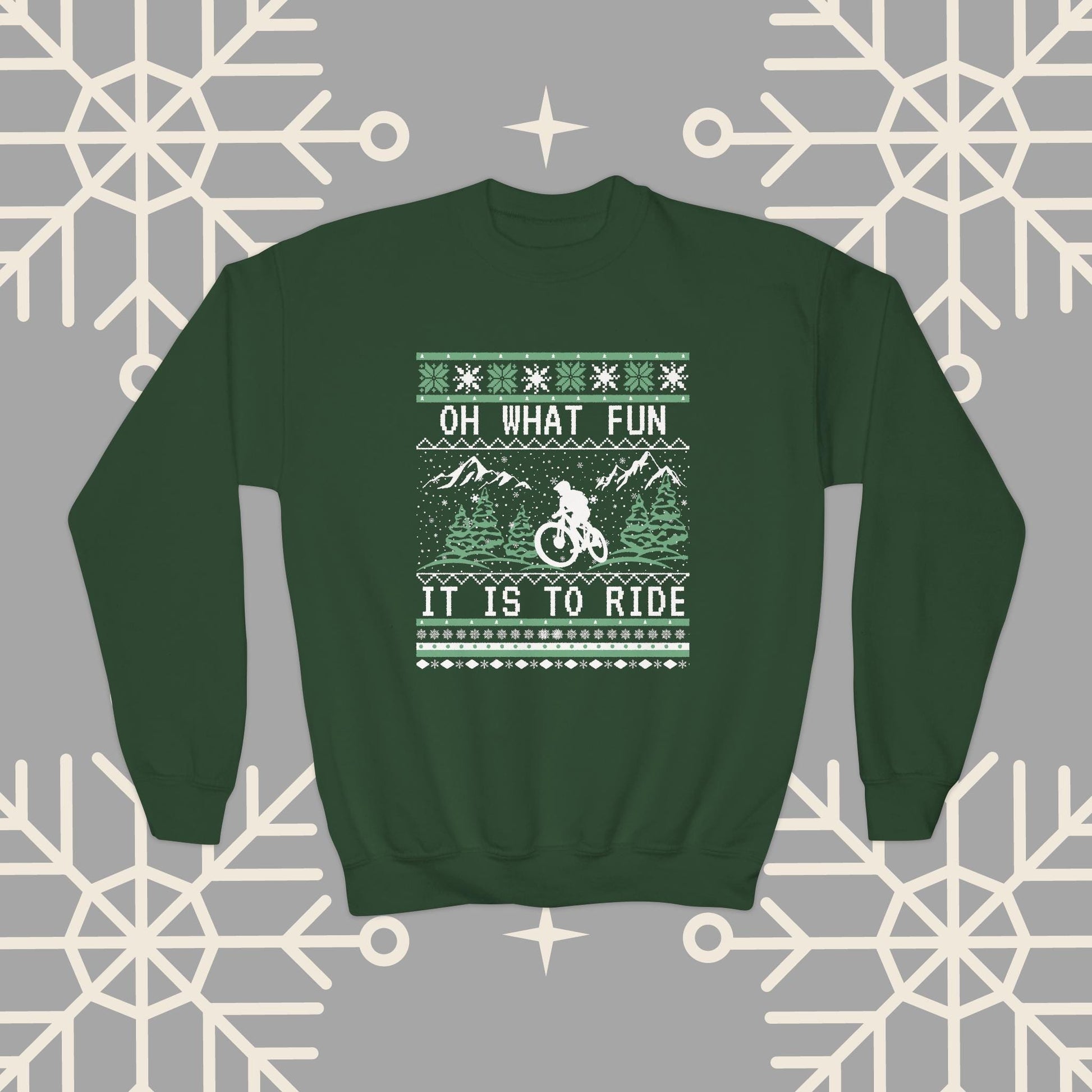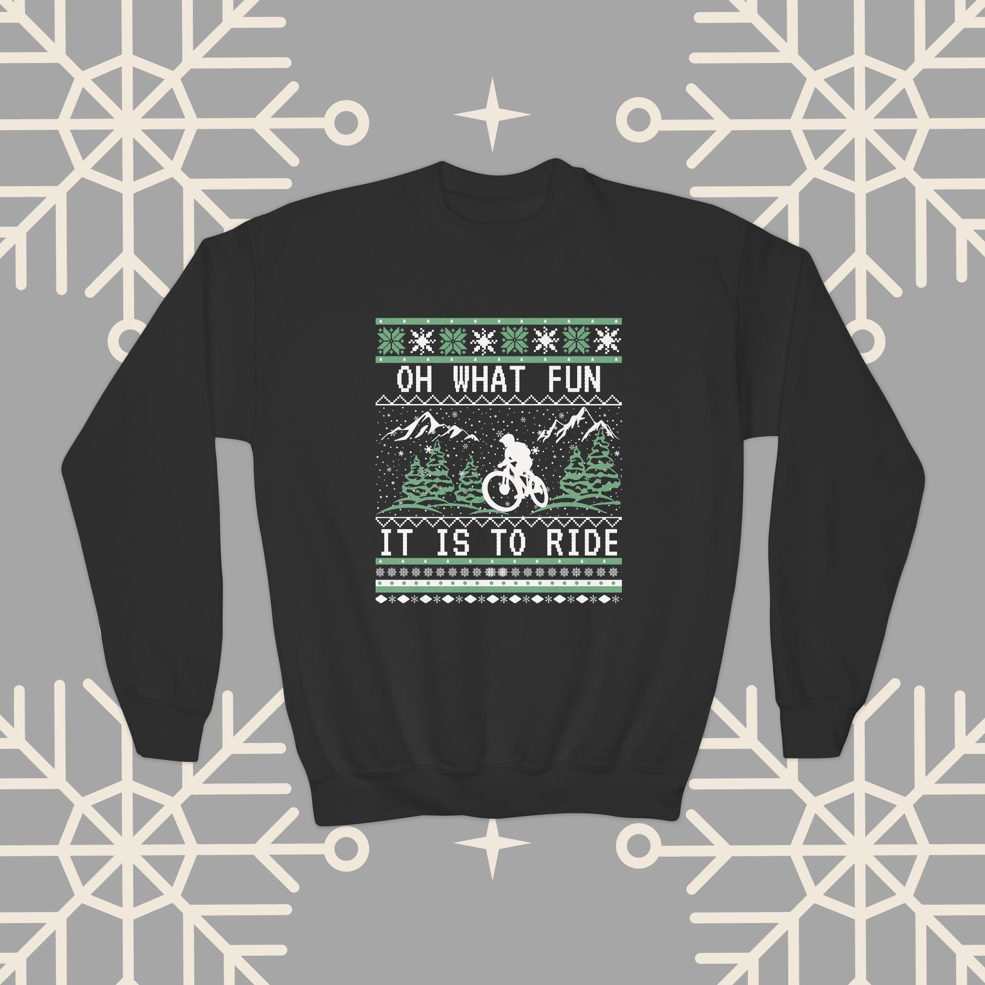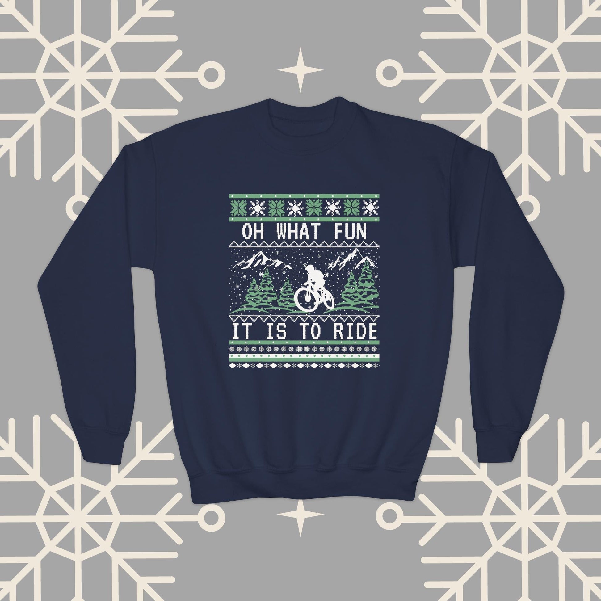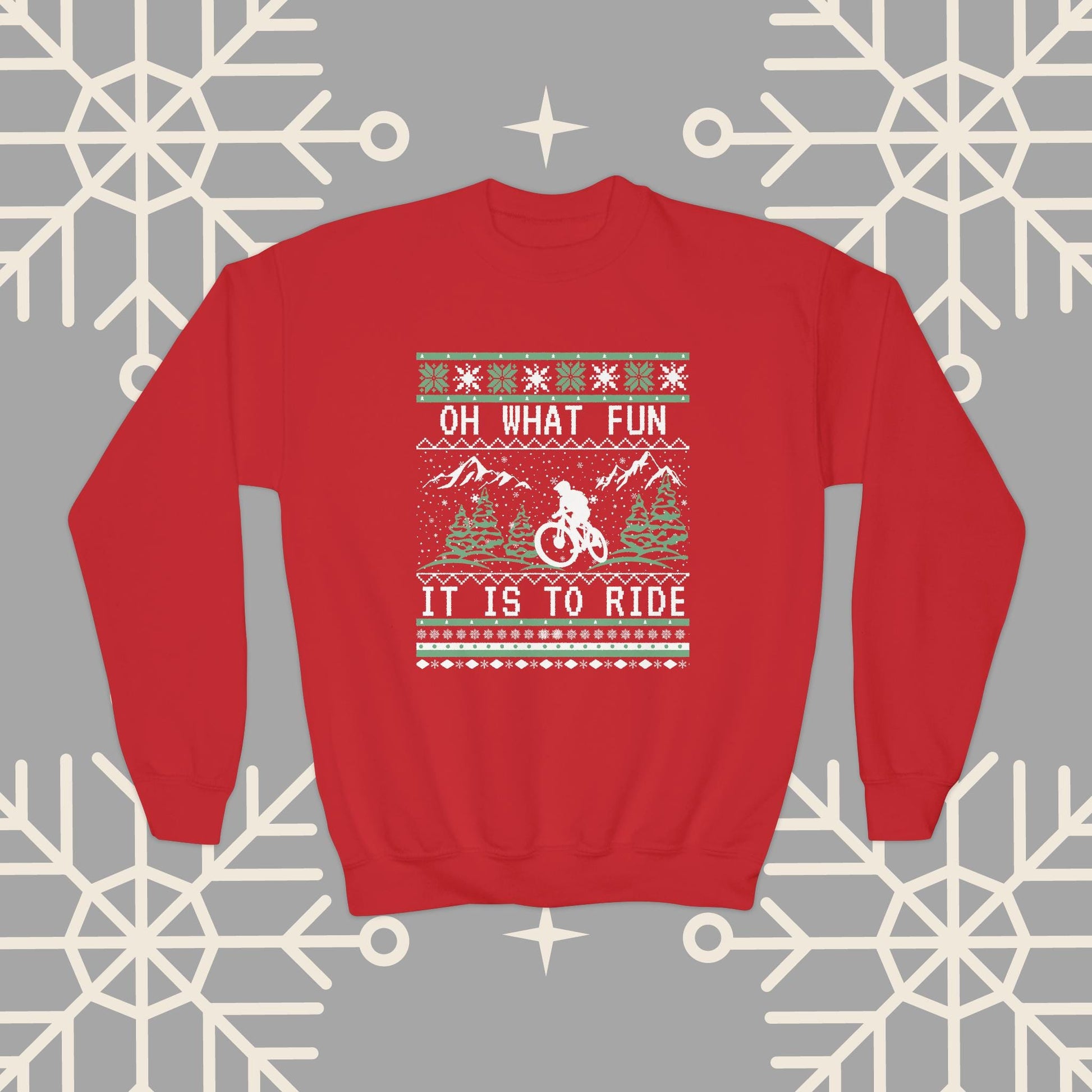Youth Mountain Biking Christmas Sweatshirt, Biker Ugly Christmas for Kids, Holiday Cycling Crewneck, Mountain Bike Gift for Boys